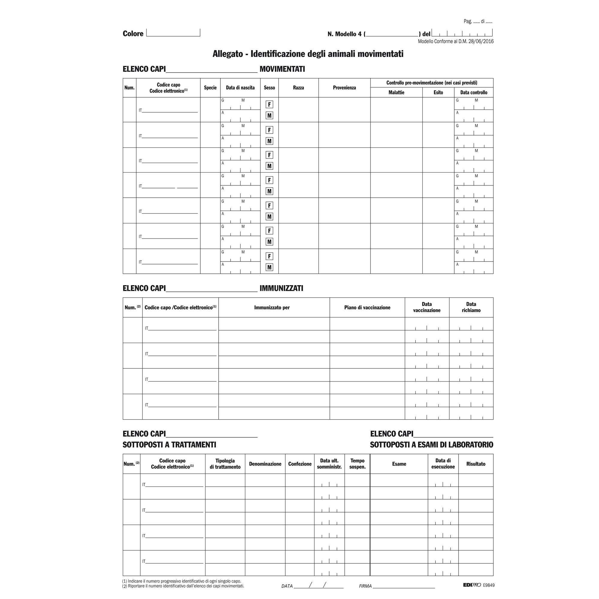 ALLEGATO IDENTIFICAZIONE ANIMALI snap 25x4 copie AUTORIC. 29,7x21cm E9849