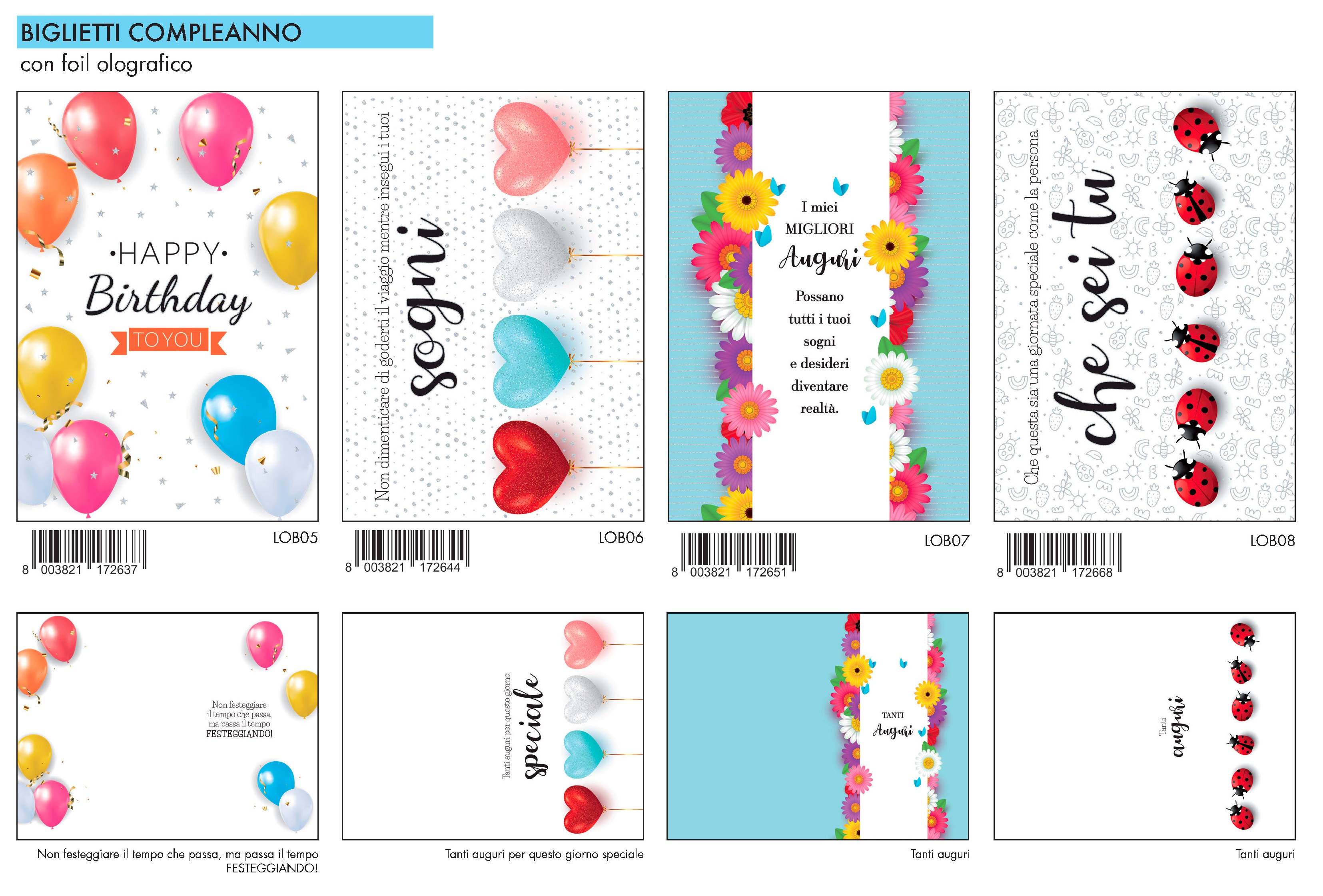ALOB02 - BUON COMPLEANNO FOIL OLOGRAFICO (12PZ)