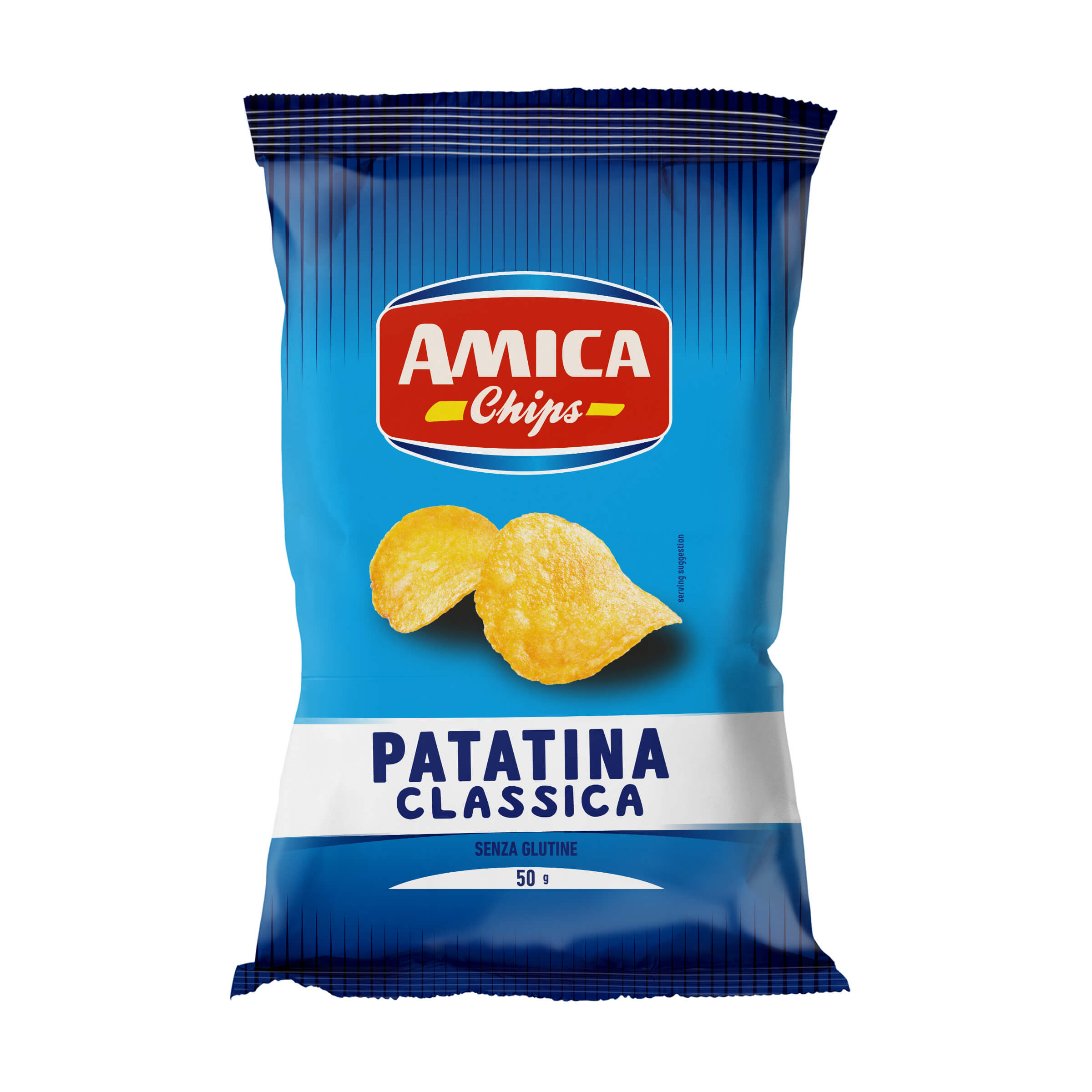 Le Amica Chips Originale sono le classiche patatine fritte, dorate e fragranti, perfette per chi ama uno snack croccante e saporito. Queste patatine sono protagoniste indiscusse degli aperitivi italiani e si sposano perfettamente con uno spritz o altre bevande. La loro semplicità le rende ideali per chi cerca un gusto autentico e senza compromessi.• Patatine Classiche: Croccanti e saporite, rappresentano il classico snack in busta amato da tutti.• Senza Glutine e Vegan: Le Amica Chips Originale sono adatte anche per chi segue una dieta senza glutine e per i vegani, grazie agli ingredienti semplici e genuini.• Perfette per ogni occasione: Che sia un aperitivo con gli amici, una pausa in ufficio o uno spuntino da portare con sé a scuola, queste patatine sono ideali per chi desidera uno snack gustoso e veloce.• Ingredienti: Patate selezionate, olio di semi di girasole (34%) e sale, per una ricetta semplice e autentica che esalta il sapore naturale delle patatine.• Valori Nutrizionali per 100 g:Calorie: 2315 kJ / 555 kcalGrassi: 34 g (di cui grassi saturi: 3,8 g)Carboidrati: 54 g (di cui zuccheri: 0,4 g)Fibre: 3,5 gProteine: 6,5 gSale: 1,5 gLe Amica Chips Originale sono le migliori amiche del tuo spritz e aggiungono un tocco croccante e saporito a ogni momento di convivialità. Provale subito e lasciati conquistare dal loro gusto irresistibile!
