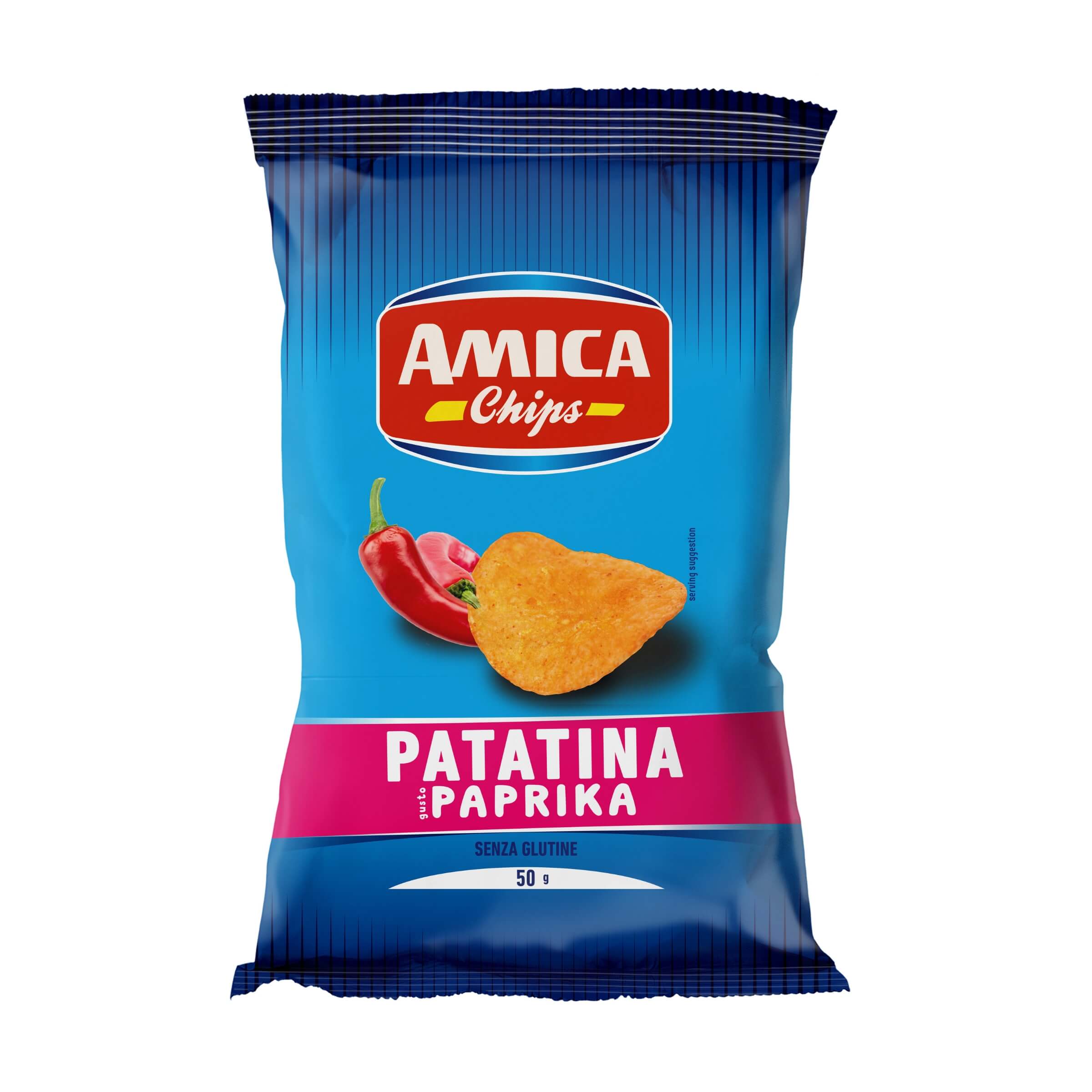 Le Amica Chips Paprika sono patatine fritte dorate e croccanti, arricchite con un intenso aroma alla paprika. Il loro sapore speziato e leggermente affumicato le rende perfette per chi cerca uno snack dal gusto deciso. Ideali per accompagnare un aperitivo o per concedersi una pausa sfiziosa, queste patatine sapranno soddisfare anche i palati più esigenti.• Gusto Paprika: L'aroma speziato e affumicato della paprika dona a queste patatine un sapore irresistibile, perfetto per chi ama i sapori decisi.• Senza Glutine e Vegan: Le patatine Amica Chips Paprika sono senza glutine e adatte anche a chi segue una dieta vegana, offrendo una soluzione gustosa e versatile per tutti.• Croccanti e Dorate: Patatine fritte in olio di semi di girasole (33%), dorate e croccanti, per un'esperienza di gusto e consistenza impeccabile.• Ingredienti: Patate, olio di semi di girasole (33%), aroma alla paprika (6%), colorante: estratto di paprika (E160C). Senza glutine.• Valori Nutrizionali per 100 g:Calorie: 2278 kJ / 546 kcalGrassi: 33 g (di cui grassi saturi: 3,6 g)Carboidrati: 54 g (di cui zuccheri: 1,1 g)Fibre: 3,5 gProteine: 6,5 gSale: 1,5 gLe Amica Chips Paprika sono lo snack perfetto per chi desidera una croccantezza intensa e un sapore speziato, ideale per ogni occasione, dalle feste agli aperitivi o come spuntino goloso.