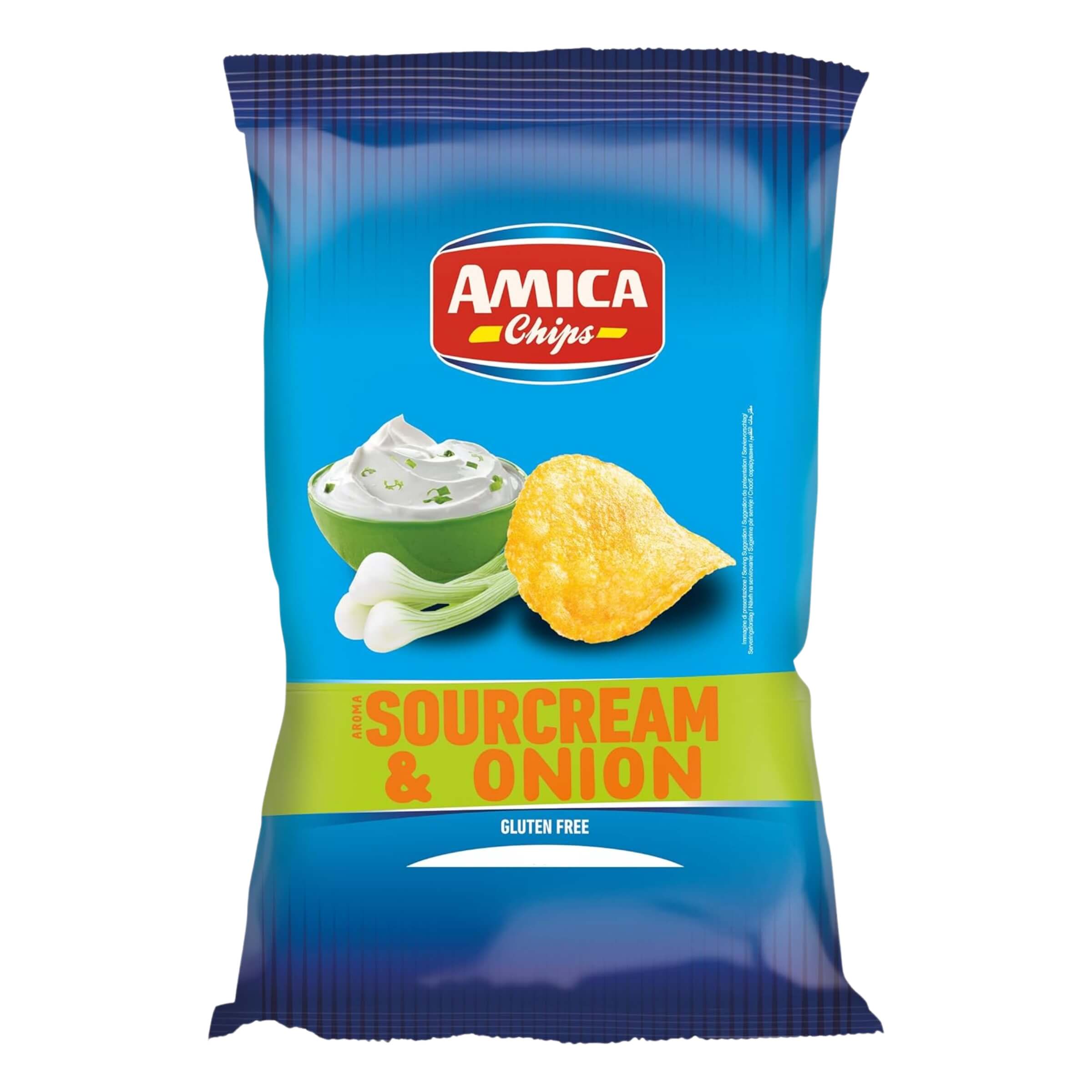 Le patatine Amica Chips Sour Cream e Onion sono lo snack perfetto per chi cerca un sapore deciso ma equilibrato, unendo la fragranza della frittura al gusto fresco e avvolgente della panna acida e cipolla.