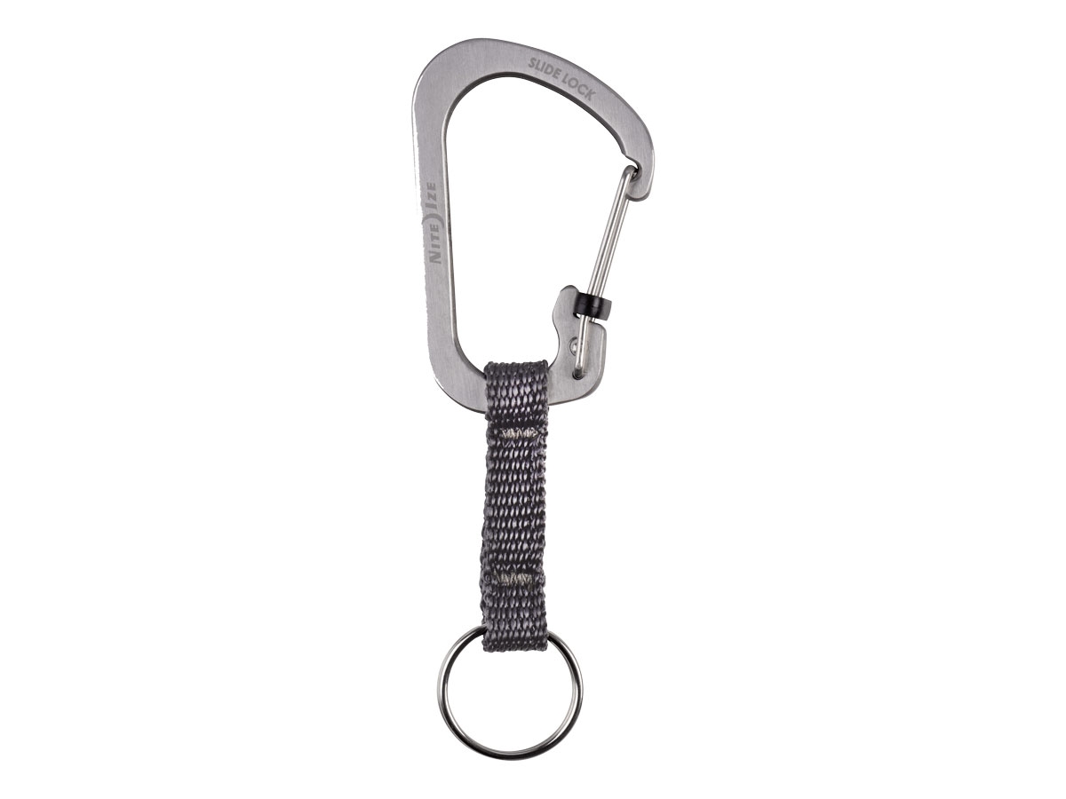 Il moschettone in acciaio inossidabile e il portachiavi sono uniti da un breve cinturino in nylon per tenere le chiavi separate, ma collegate. Il moschettone è dotato di un meccanismo SlideLock che blocca il cancello in modo che possa essere fissato con sicurezza al passante di una cintura, allo zaino o ad una tracolla.