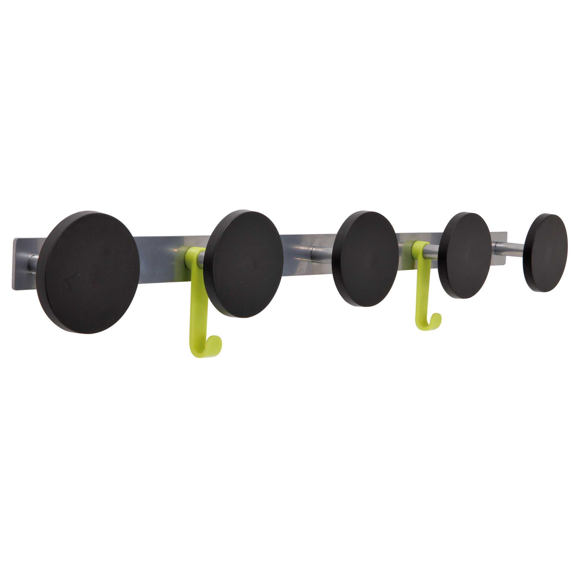 Appendiabiti da muro a 5 posti 77x9cm ALBA APPENDIABITI IN ACCIAIO E ABS CON 5 SUPPORTI TONDI (90MM DI DIAMETRO). VITI PER IN FISSAGGIO COMPRESE. DIMENSIONI 77X9CM.