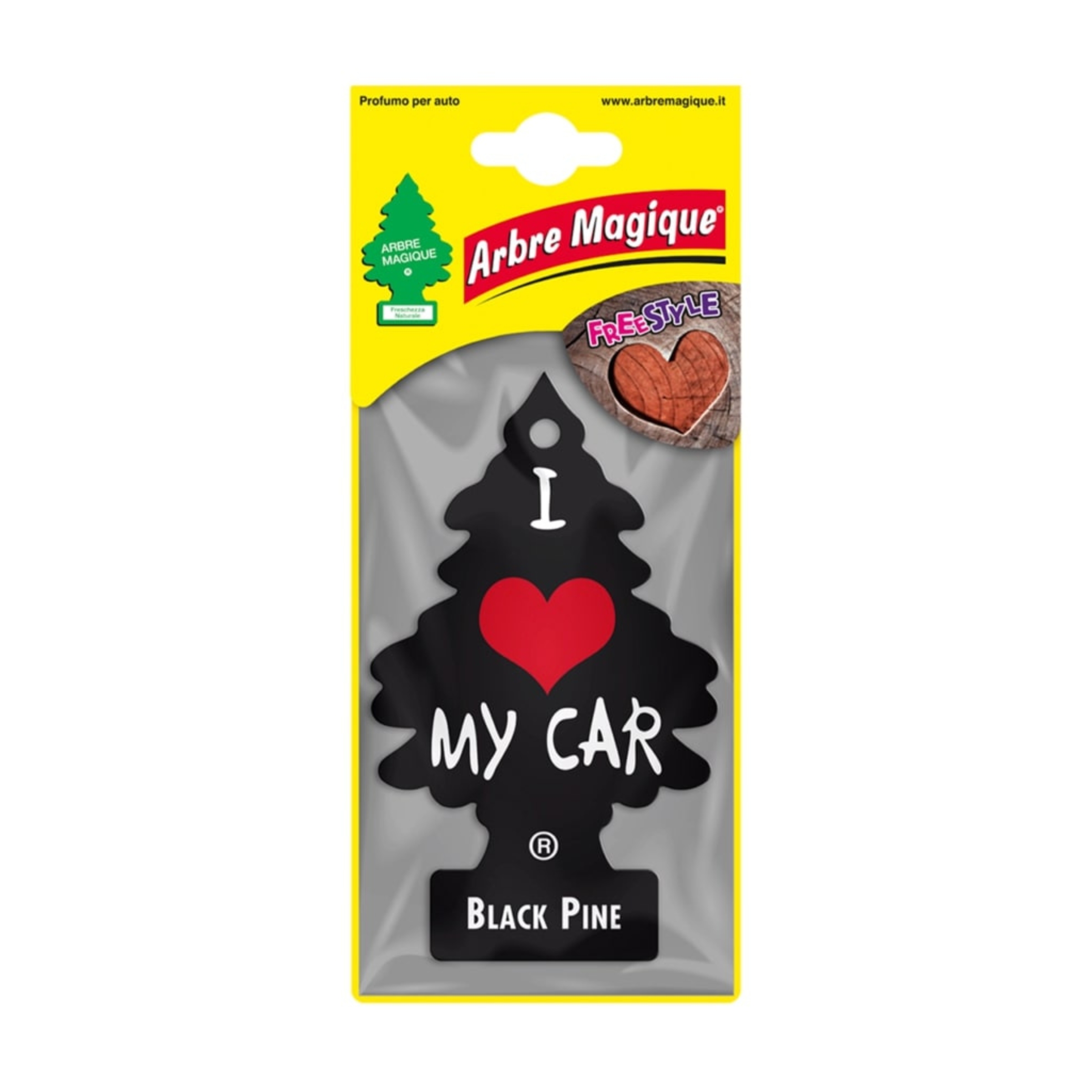 Arbre Magique Black Pine cattura l'essenza di un profumo dinamico ed energico, perfetto per chi cerca una fragranza che infonda vigore e carica per affrontare la giornata.• Fragranza Dinamica con Note Legnose: Questo deodorante per auto unisce la freschezza frizzante degli agrumi al fascino del gelsomino, arricchito da un fondo intenso e misterioso di muschio e legni, che insieme creano un'atmosfera avvolgente e stimolante.• Esperienza Olfattiva Intensa: Classificato come un profumo con note principali di agrumi, legni e vetiver, Black Pine offre una combinazione perfetta di freschezza e profondità, ideale per chi ama le essenze che lasciano un'impressione duratura.Arbre Magique Black Pine è la scelta ideale per chi desidera un compagno di viaggio che non solo rinfreschi l'ambiente, ma anche ispiri e rinvigorisca con ogni respirazione.