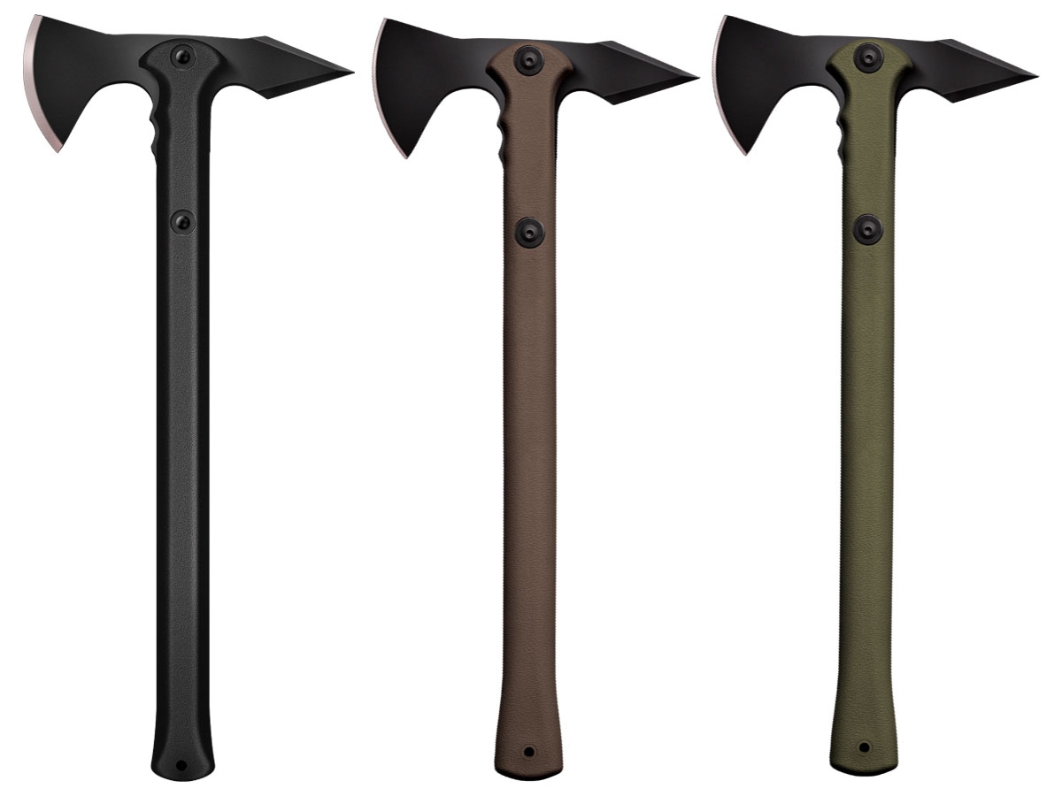 Cold Steel TRENCH HAWK COLORI ASSORTITI (NERO / MARRONE / VERDE OLIVA) 90PTHTrench HawkLama: 1055 Carb. - Manico: PolipropileneL.tot.: cm.48,3 - Fodero: Polipropilene