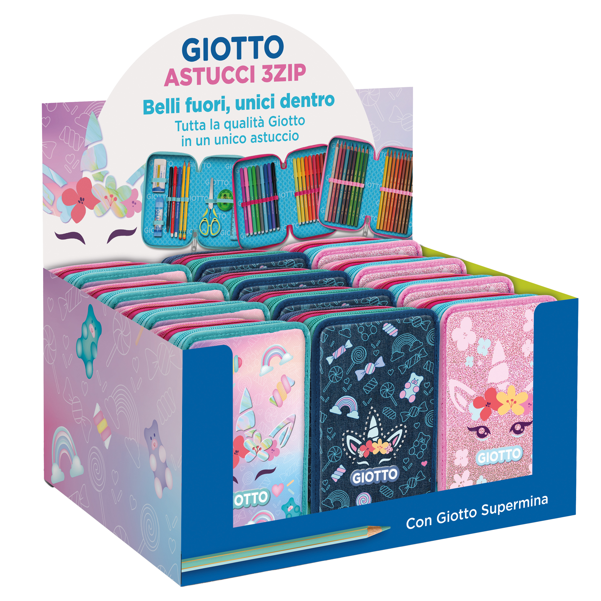 Astuccio 3 zip Candy collection fantasie assortite Giotto
