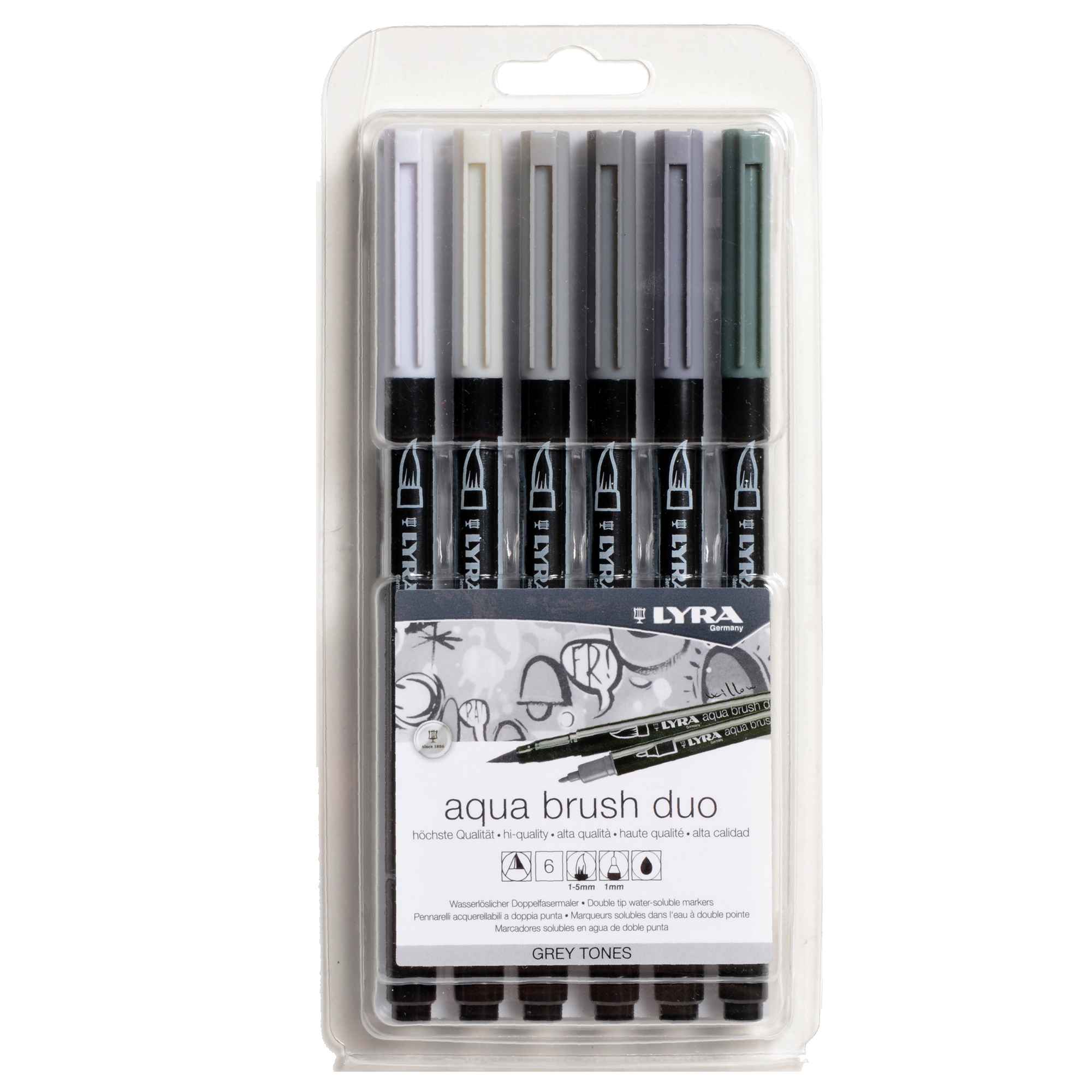 ASTUCCIO 6 PENNARELLI AQUA BRUSH DUO LYRA Scala di Grigio L6521063