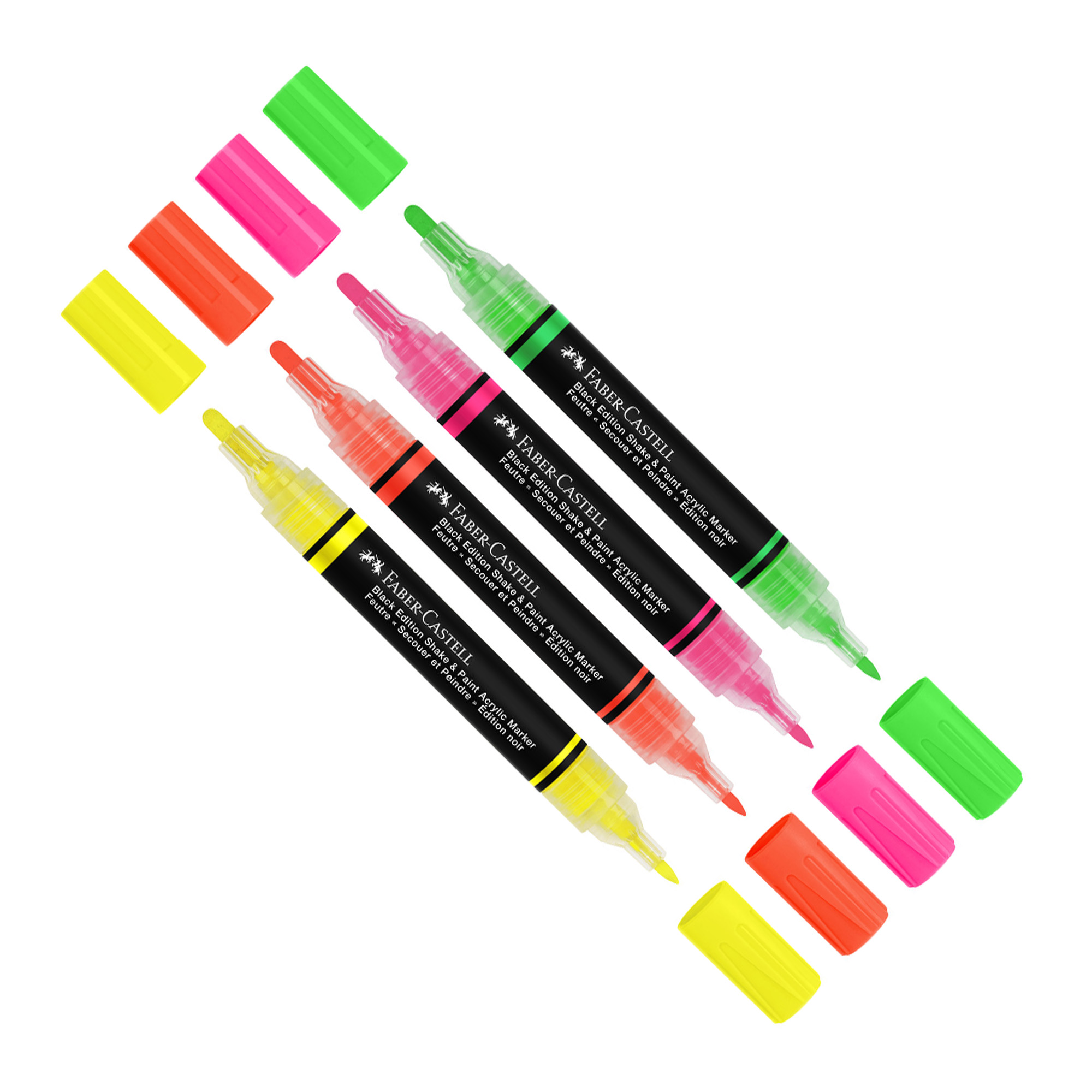 ASTUCCIO 4 MARCATORE ACRILICO FABER CASTELL SHAKEPAINT BLACK EDITION (Neon Assor