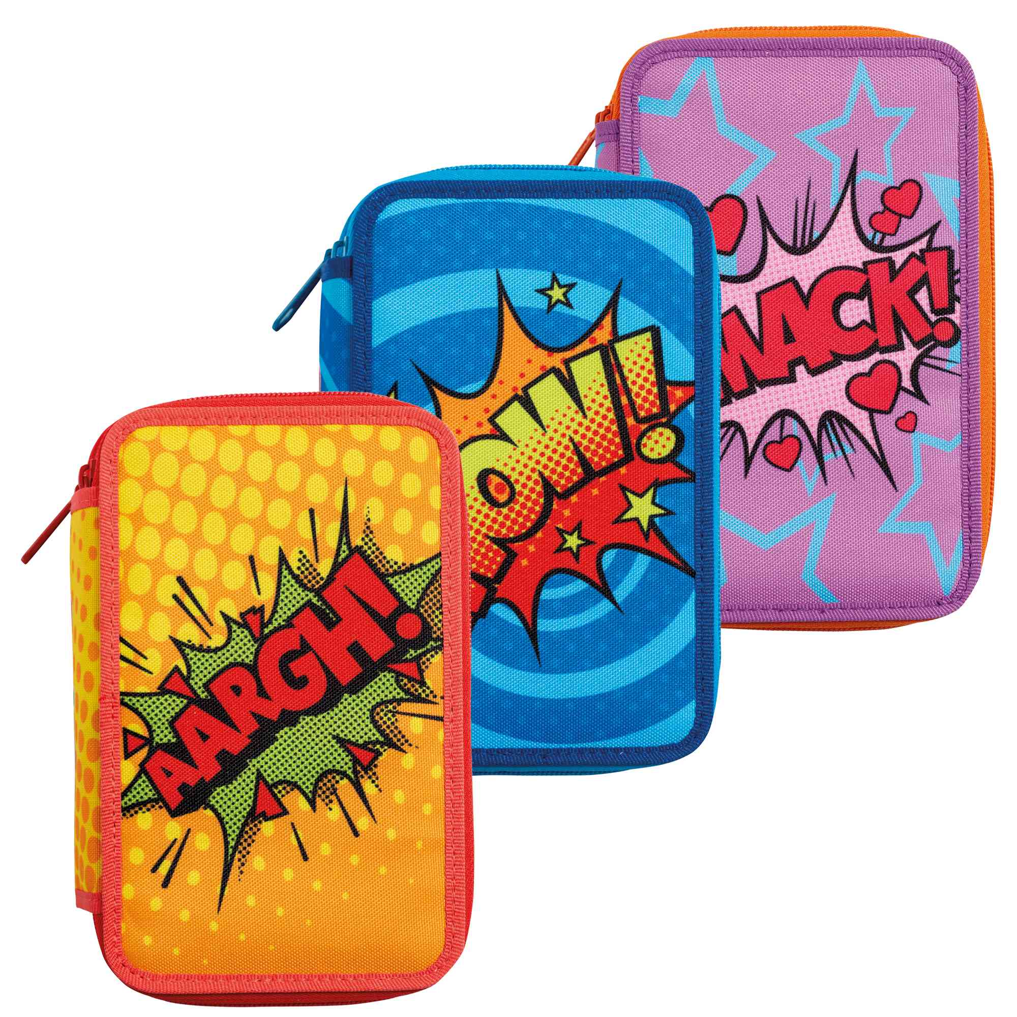 ASTUCCIO 3 ZIP IN VIVACI COLORI E FANTASIE. REALIZZATO IN TESSUTO RESISTENTE CON BORDI RINFORZATI. CONTIENE: 18 PENNARELLI PUNTA FINE JOY, 18 MATITE COLORATE TITA, 1 SFERA CANCELLABILE OOPS POP, 1 SFERA COLORE BLU ,1 MATITA GRAFITE HB, 1 TEMPERINO A 1 FOTO PLASTICA, 1 GOMMA, 1 RIGHELLO CM. 20 Composto da 6