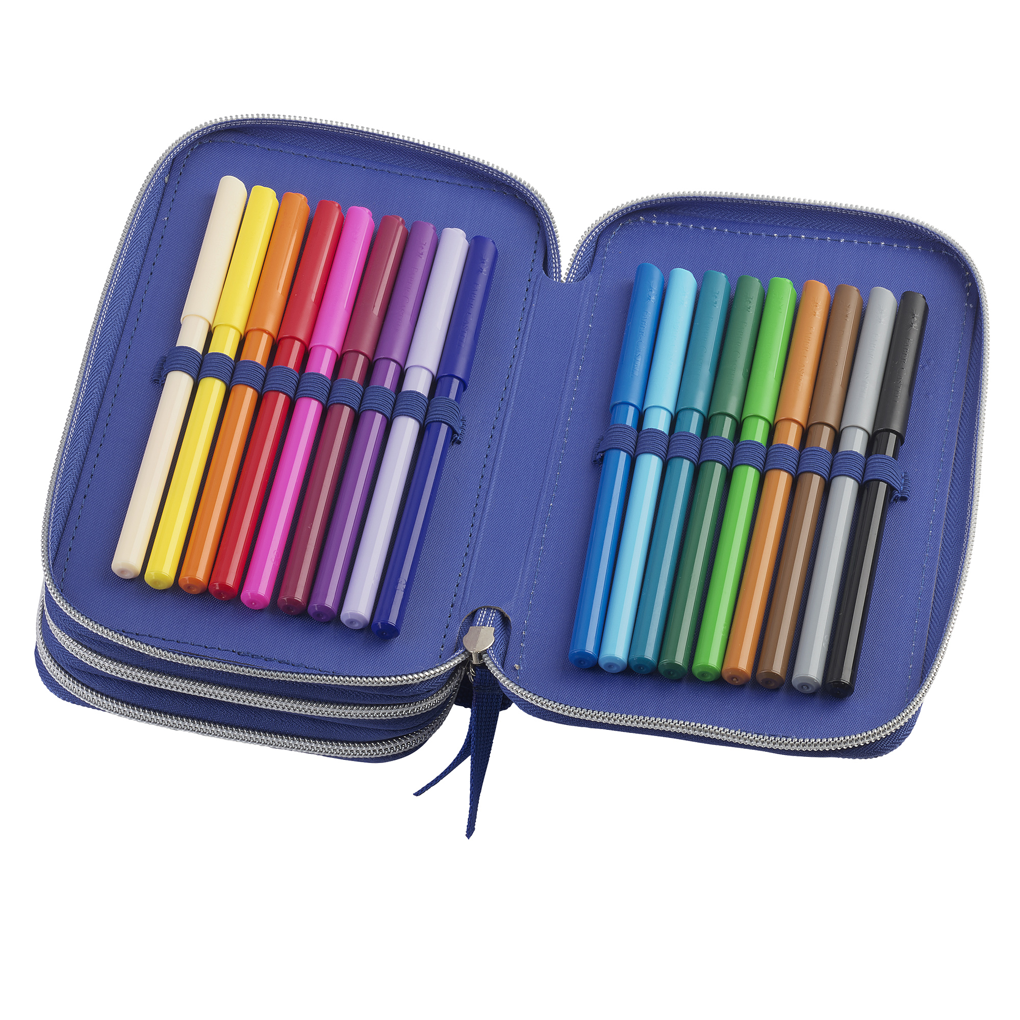 ASTUCCIO SUDDIVISO IN 3 SEZIONI, CONTENUTO: 18 MATITE COLORATE ESAGONALI, 18 PENNARELLI CON PUNTA IN FELTRO, 1 MATITA GRAFITE GRIP HB, 1 TEMPERINO MONOFORO C/CONTENITORE, 1 GOMMA, 1 RIGHELLO 15CM, 1 COLLA STICK DA 9GR, 1 PENNA SFERA BLU, 1 PENNA SFERA ROSSA E 1 FORBICE SCOLASTICA.