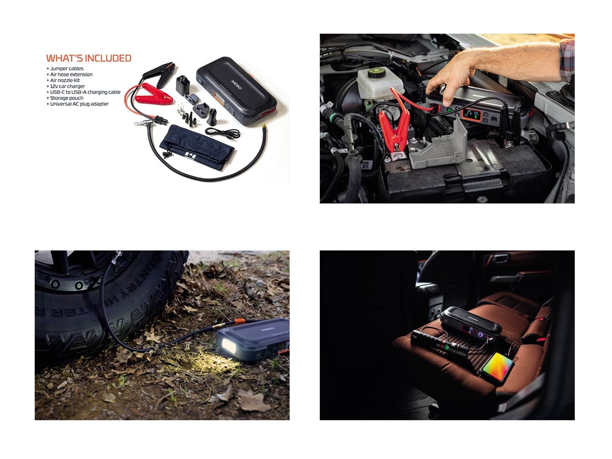 Le batterie delle auto scariche e le gomme a terra sono inconvenienti inaspettati e scomodi. L'Assist Air di NEBO ti aiuta a controllare una situazione di emergenza con il suo vantaggio di 4 utilità in 1, in quanto è in grado di fornire avviamento di emergenza, gonfiaggio, ricarica e luce. Alimentato con 1500 ampere, puoi avviare con sicurezza qualsiasi batteria da 12 volt per auto, SUV, camion o marina ed è adatto per motori a gas da 8 litri e diesel da 4 litri. La tecnologia intelligente è integrata nel design a prova di errore, quindi i cavi jumper sono a prova di scintilla, mantenendoti al sicuro con la più recente batteria intelligente e la protezione di ricarica brevettata. La guida all'avvio rapido in 3 passaggi è comodamente stampata direttamente sulla custodia in microfibra. NEBO Assist Air è anche ricaricabile tramite USB-C e funge anche da power bank portatile per ricaricare dispositivi alimentati tramite USB come smartphone o tablet e dispone di un faro integrato, così sei meglio preparato per le situazioni di emergenza stradale.