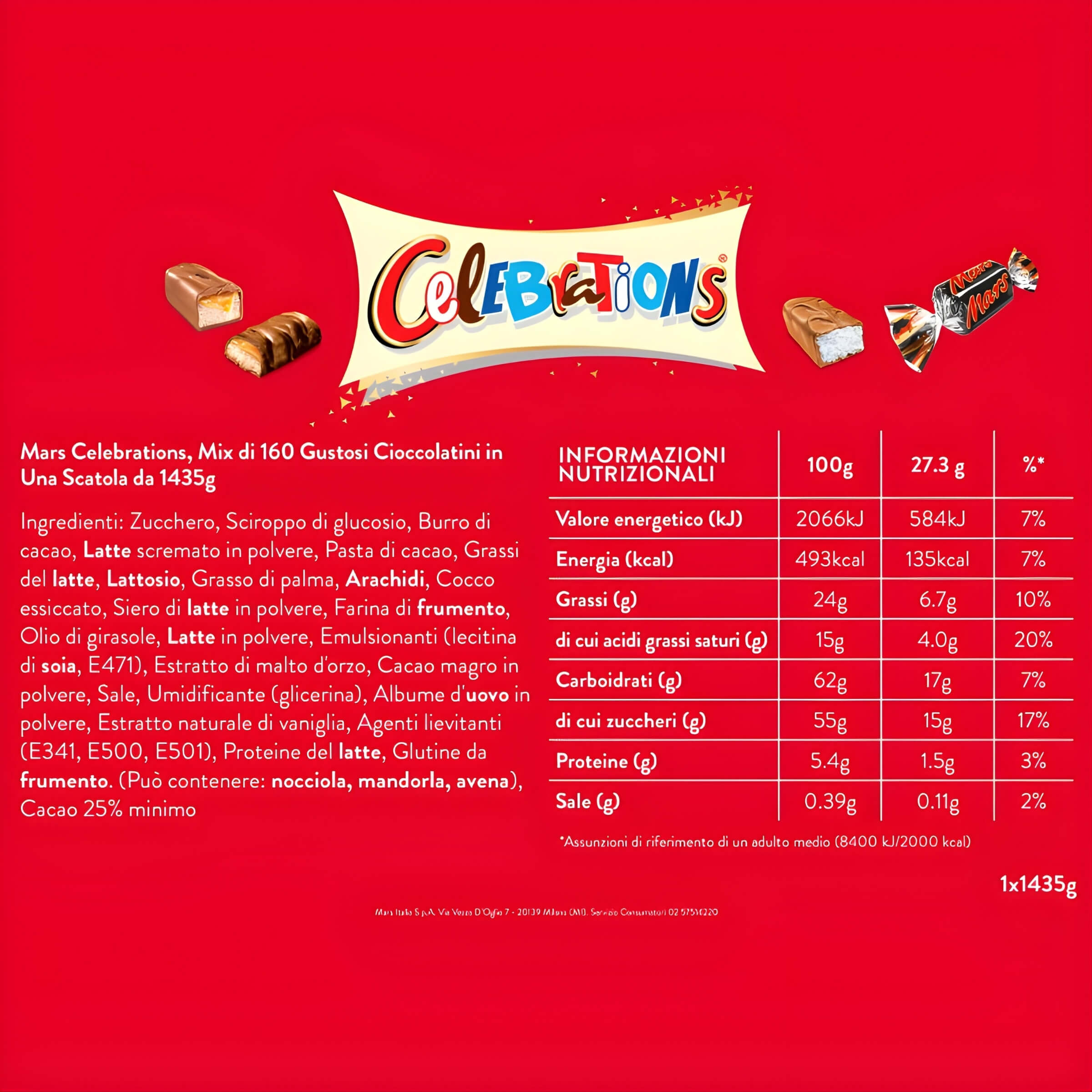 Questo assortimento è pensato per chi ama la varietà e desidera offrire un tocco di dolcezza in ogni contesto. Celebrations è sinonimo di condivisione e allegria, un mix che trasforma anche un semplice gesto in un momento di gioia autentica.