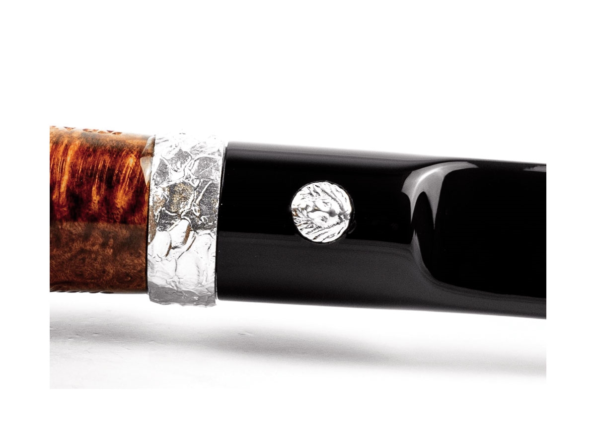 In questa serie invece di utilizzare il noto logo Barling incrociato, è stato scelto una testa di leone in argento sterling. Anche l'applicazione aggiuntiva sullo stelo è realizzata in massiccio argento sterling.