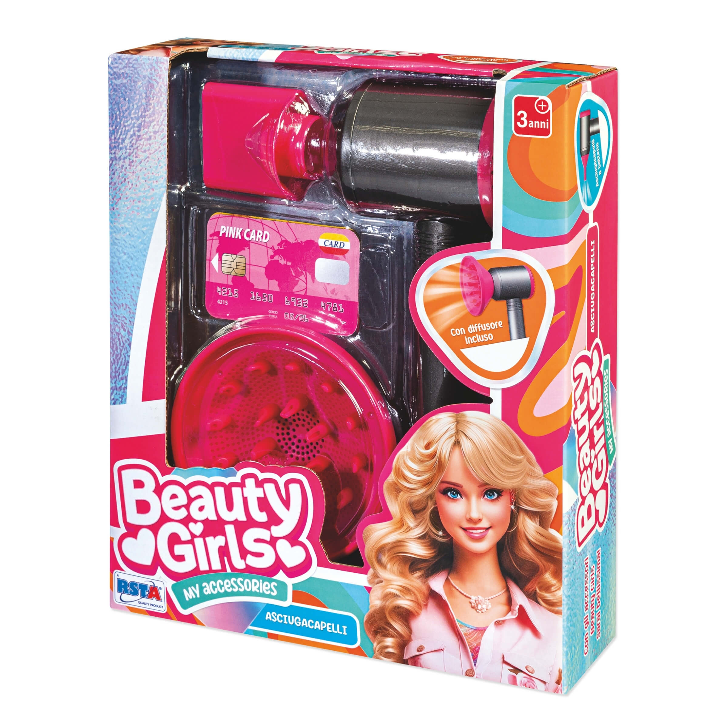 Regala alla tua bambina un'esperienza realistica e divertente con l'asciugacapelli Beauty Girls con diffusore, perfetto per imitare i gesti quotidiani di bellezza della mamma! Questo asciugacapelli giocattolo, dal design elegante e moderno, stimola la fantasia e favorisce il gioco creativo, permettendo di sperimentare momenti di puro divertimento e allegria.• Design Realistico: L'asciugacapelli Beauty Girls riproduce fedelmente l'aspetto di un vero phon, con dettagli curati e una combinazione elegante di colori grigio scuro e rosa acceso, ideale per tutte le bambine che amano sentirsi protagoniste di momenti di bellezza.• Diffusore Incluso: Arricchito con un diffusore removibile, il set permette di simulare diverse acconciature e styling, proprio come in un vero salone di bellezza. Un accessorio che aggiunge realismo e moltiplica il divertimento.• Accessori e Dettagli: Il set include anche una simpatica card gioco che aggiunge valore e arricchisce ulteriormente l’esperienza di gioco, stimolando la fantasia e il divertimento.• Sicurezza Garantita: Realizzato con materiali sicuri, testato secondo rigorosi standard europei EN71 e conforme alla Direttiva sulla Sicurezza dei Giocattoli 2009/48/EC, questo asciugacapelli è un gioco totalmente sicuro per bambini dai 3 anni in su.• Qualità Certificata: Il prodotto rispetta le norme armonizzate sulla sicurezza meccanica e fisica (EN71-1), sull’infiammabilità (EN71-2) e sulla migrazione di elementi chimici (EN71-3). Conforme inoltre agli standard EN IEC 62115 per giocattoli elettrici, e al regolamento europeo REACH per quanto riguarda il contenuto di sostanze chimiche.Lascia che la tua piccola parrucchiera esplori la creatività e l’immaginazione con questo fantastico set Beauty Girls!