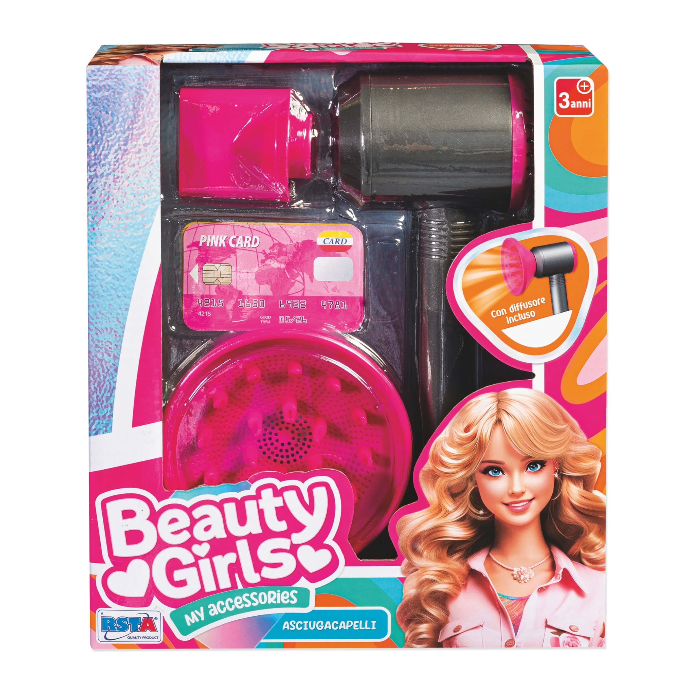 Regala alla tua bambina un'esperienza realistica e divertente con l'asciugacapelli Beauty Girls con diffusore, perfetto per imitare i gesti quotidiani di bellezza della mamma! Questo asciugacapelli giocattolo, dal design elegante e moderno, stimola la fantasia e favorisce il gioco creativo, permettendo di sperimentare momenti di puro divertimento e allegria.• Design Realistico: L'asciugacapelli Beauty Girls riproduce fedelmente l'aspetto di un vero phon, con dettagli curati e una combinazione elegante di colori grigio scuro e rosa acceso, ideale per tutte le bambine che amano sentirsi protagoniste di momenti di bellezza.• Diffusore Incluso: Arricchito con un diffusore removibile, il set permette di simulare diverse acconciature e styling, proprio come in un vero salone di bellezza. Un accessorio che aggiunge realismo e moltiplica il divertimento.• Accessori e Dettagli: Il set include anche una simpatica card gioco che aggiunge valore e arricchisce ulteriormente l’esperienza di gioco, stimolando la fantasia e il divertimento.• Sicurezza Garantita: Realizzato con materiali sicuri, testato secondo rigorosi standard europei EN71 e conforme alla Direttiva sulla Sicurezza dei Giocattoli 2009/48/EC, questo asciugacapelli è un gioco totalmente sicuro per bambini dai 3 anni in su.• Qualità Certificata: Il prodotto rispetta le norme armonizzate sulla sicurezza meccanica e fisica (EN71-1), sull’infiammabilità (EN71-2) e sulla migrazione di elementi chimici (EN71-3). Conforme inoltre agli standard EN IEC 62115 per giocattoli elettrici, e al regolamento europeo REACH per quanto riguarda il contenuto di sostanze chimiche.Lascia che la tua piccola parrucchiera esplori la creatività e l’immaginazione con questo fantastico set Beauty Girls!