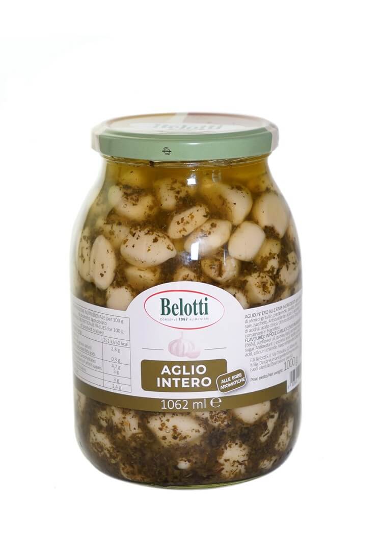 Teneri spicchi di aglio arricchiti con un mix di prezzemolo ed erbe aromatiche. La speciale lavorazione e la conseguente cottura dell’aglio permettono di proporre un prodotto facilmente digeribile e, importantissimo, che non provoca il fastidioso “alito cattivo”. Gli spicchi di aglio possono essere gustati da soli come ottimo aperitivo o stuzzichino, ma trovano il loro perfetto abbinamento con salumi e prosciutti.Peso Netto: 1000 gIngredienti: aglio (66%), olio di semi di girasole, prezzemolo, basilico, erbe aromatiche, sale, zucchero. Antiossidante: acido L-ascorbico. Correttori di acidità: acido citrico, cloruro di calcio.Dopo l'apertura conservare in frigorifero.DICHIARAZIONE NUTRIZIONALE per 100 g di prodotto sgocciolato:Energia: 251 kJ/60 kcalGrassi: 2,8 g di cui acidi grassi saturi 0,3 gCarboidrati: 4,7 g di cui zuccheri 3 gFibre: 2,1 gProteine: 3 gSale: 3,4 g