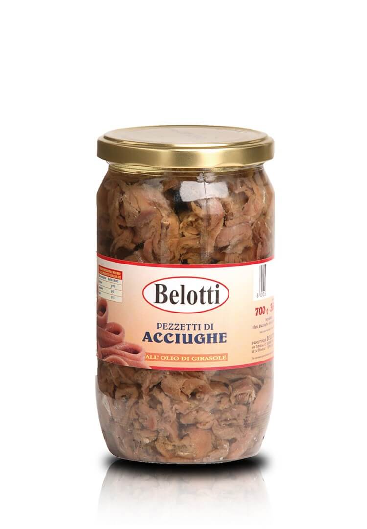 Una volta pescate le acciughe vengono filettate e conservare in olio. Perfette in cucina o su bruschette. Peso Netto: 700 gIngredienti: acciughe, olio di semi di girasole, sale.Dopo l'apertura conservare in frigorifero.DICHIARAZIONE NUTRIZIONALE per 100 g di prodotto sgocciolato:Energia: 799 kJ/191 kcalGrassi: 10,3 g di cui acidi grassi saturi 2,2 gCarboidrati: 0,6 g di cui zuccheri 0 gProteine: 24 gSale: 16 g