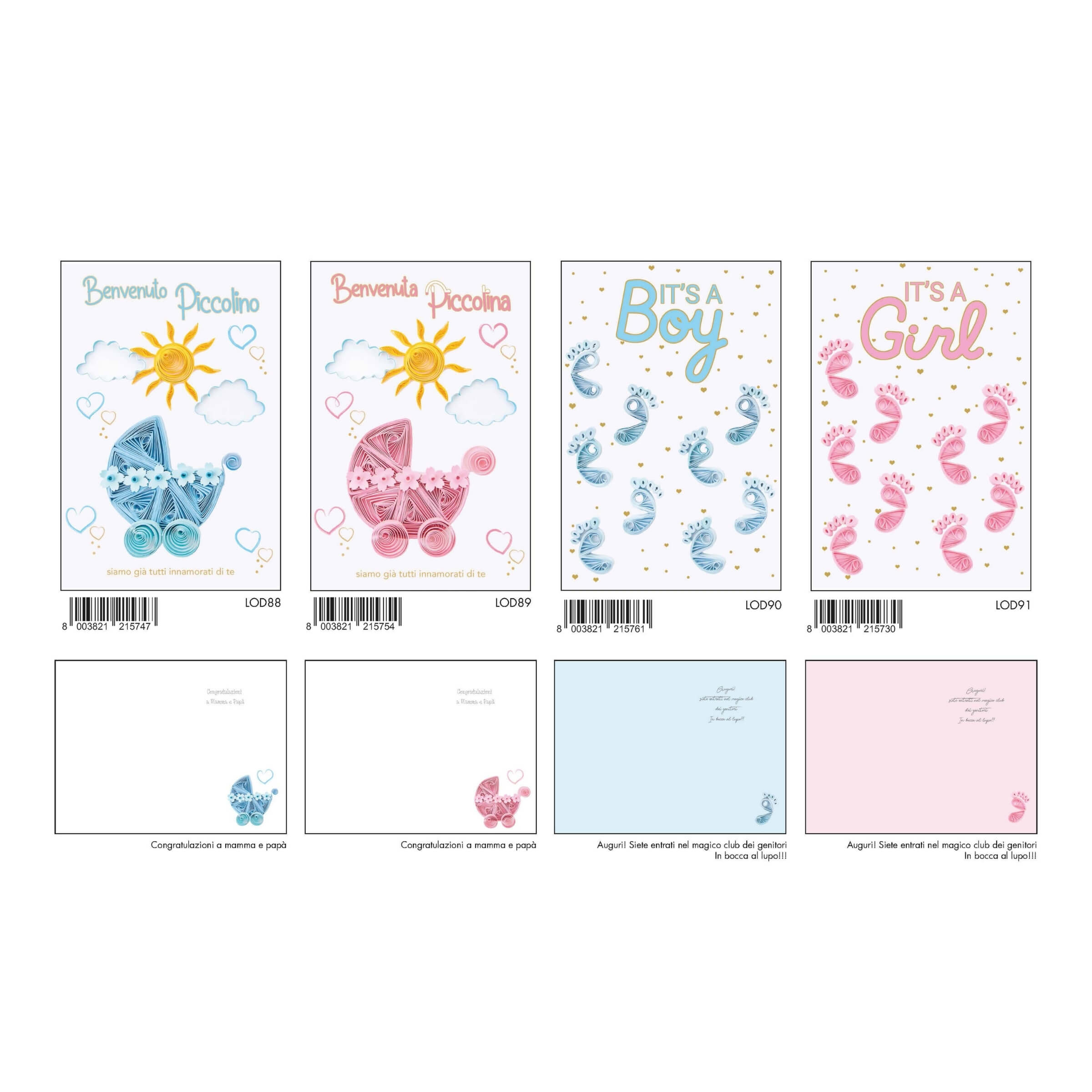 Accogli i nuovi arrivati con stile ed eleganza grazie ai Biglietti Augurali Nascita con Foil Oro. Questi biglietti celebrano il lieto evento della nascita con un design dolce e dettagli in foil dorato, perfetti per esprimere le tue congratulazioni ai neogenitori.• Dettagli in Foil Oro Raffinato: I particolari in foil dorato donano una brillantezza delicata ai biglietti, aggiungendo un tocco di lusso a un momento così speciale come la nascita di un bambino.• Design Tenero e Accattivante: Dai teneri passeggini ai piccoli piedini, ogni biglietto è arricchito da grafiche dolci e vivaci, ideali per festeggiare l'arrivo di un nuovo membro della famiglia, sia maschio che femmina.• Materiali di Alta Qualità: La carta di alta qualità e i dettagli curati assicurano una presentazione impeccabile, rendendo questi biglietti perfetti da conservare come ricordo di un momento così unico.• Adatti a Neogenitori: Questi biglietti sono perfetti per augurare ai neogenitori momenti felici e indimenticabili, accompagnati da dolci frasi che riscaldano il cuore.• Set da 12 Pezzi: Ogni confezione include 12 biglietti assortiti, ciascuno con un messaggio e un design unico, pensati per celebrare sia la nascita di un maschietto che di una femminuccia.I Biglietti Augurali Nascita con Foil Oro sono la scelta perfetta per esprimere gioia e affetto in uno dei momenti più emozionanti della vita. Con il loro design delicato e i dettagli preziosi, renderanno indimenticabile ogni augurio di benvenuto.