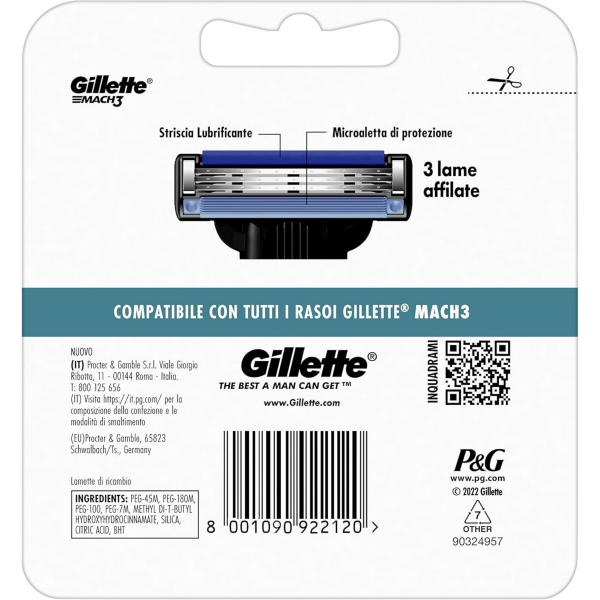 In ogni routine quotidiana ci sono gesti che vanno oltre la funzionalità: sono momenti personali, silenziosi e precisi, come la rasatura. Le lamette di ricambio Gillette Mach3 sono progettate per chi desidera una rasatura affidabile, scorrevole e delicata sulla pelle, ogni mattina. Grazie alla combinazione tra materiali avanzati e un design funzionale, ogni lama assicura prestazioni elevate, trasformando un’abitudine in un gesto di cura e controllo.• Tre lame affilate di precisione: La struttura a tripla lama consente un taglio regolare e profondo, riducendo la necessità di passaggi ripetuti e contribuendo a una rasatura più confortevole e uniforme.• Microaletta di protezione integrata: Tende delicatamente la pelle prima del passaggio delle lame, facilitando il taglio del pelo e minimizzando il rischio di tagli o arrossamenti.• Striscia lubrificante migliorata: Il lubrastrip rilascia sostanze emollienti a contatto con l’acqua, ottimizzando la scorrevolezza del rasoio e segnalando quando è il momento di sostituire la testina.• Lame rinforzate a lunga durata: Ogni lametta è realizzata con acciaio potenziato, più resistente rispetto alle versioni precedenti, e garantisce fino a 15 rasature di qualità.• Compatibilità universale: Le testine si adattano perfettamente a tutti i manici della linea Gillette Mach3, semplificando la sostituzione e assicurando continuità d’uso.• Confezione da 5 ricambi: La pratica confezione da cinque unità garantisce un'autonomia media fino a 5 mesi, ideale per mantenere alta l’efficienza nel tempo.Affidarsi a una tecnologia consolidata significa scegliere consapevolmente strumenti che rispettano il tempo, la pelle e l’equilibrio della propria routine. Le lamette Mach3 rappresentano un equilibrio tra innovazione, durata e comfort, restituendo una sensazione di freschezza e precisione a ogni passaggio.