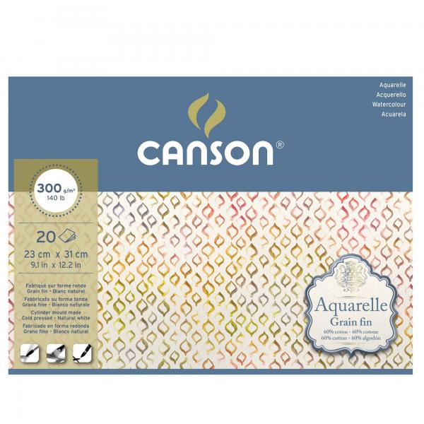 Blocco collato 4 lati AQUARELLE 23x31 cm 20 fg. 300 gr. grana fine Canson