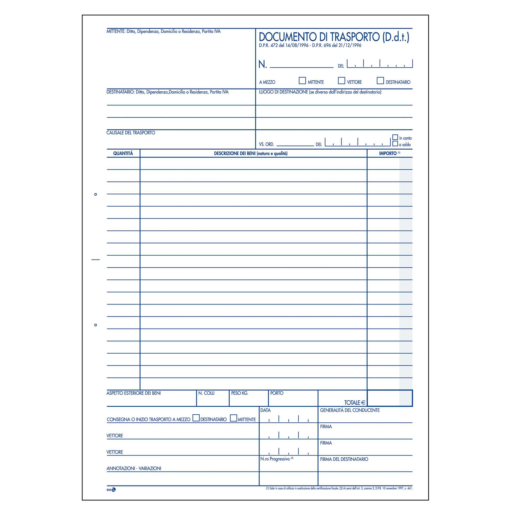 BLOCCO DDT 225X297mm 50fgx3copie (mitt-dest-vett) BM Composto da 5