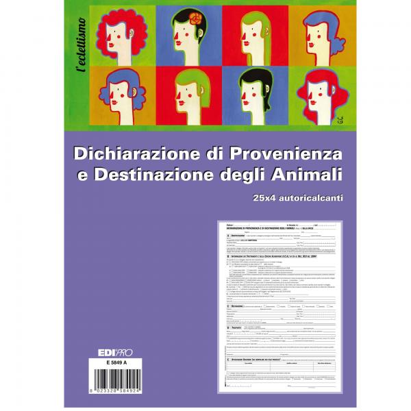 BLOCCO DICHIARAZ. PROV.-DEST. ANIMALI 25x4 copie AUTORIC. 30x22,5cm E5849A(17)