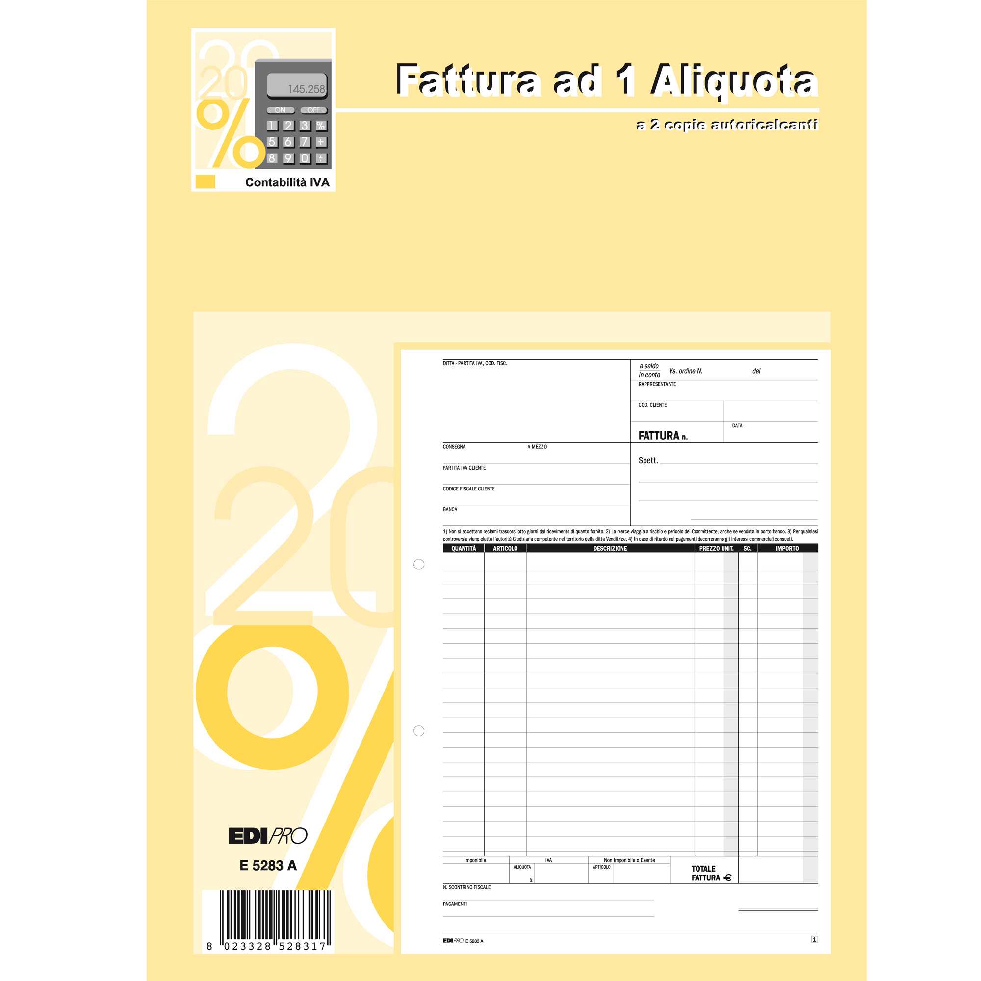 BLOCCO FATTURE 1 ALIQUOTA IVA 50/50 FOGLI AUTORIC. 29,7X21 E5283A