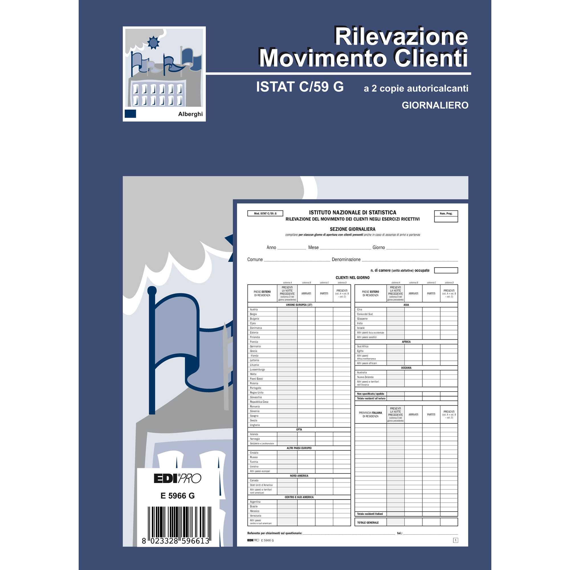 BLOCCO MODELLO ISTAT C59 GIORNALIERO 31x21cm 50fg 2copie ric E5966G EDIPRO