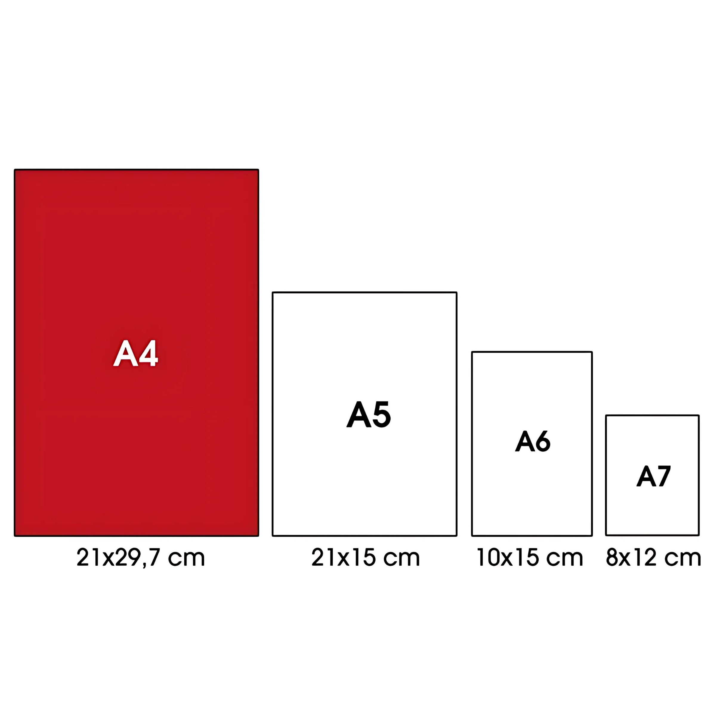 • Formato A4 : Grazie alle sue dimensioni generose, il formato A4 (210x297 mm) è perfetto per prendere appunti dettagliati, schizzi o annotazioni importanti. Si adatta perfettamente all'uso in ufficio, a scuola o per progetti personali.