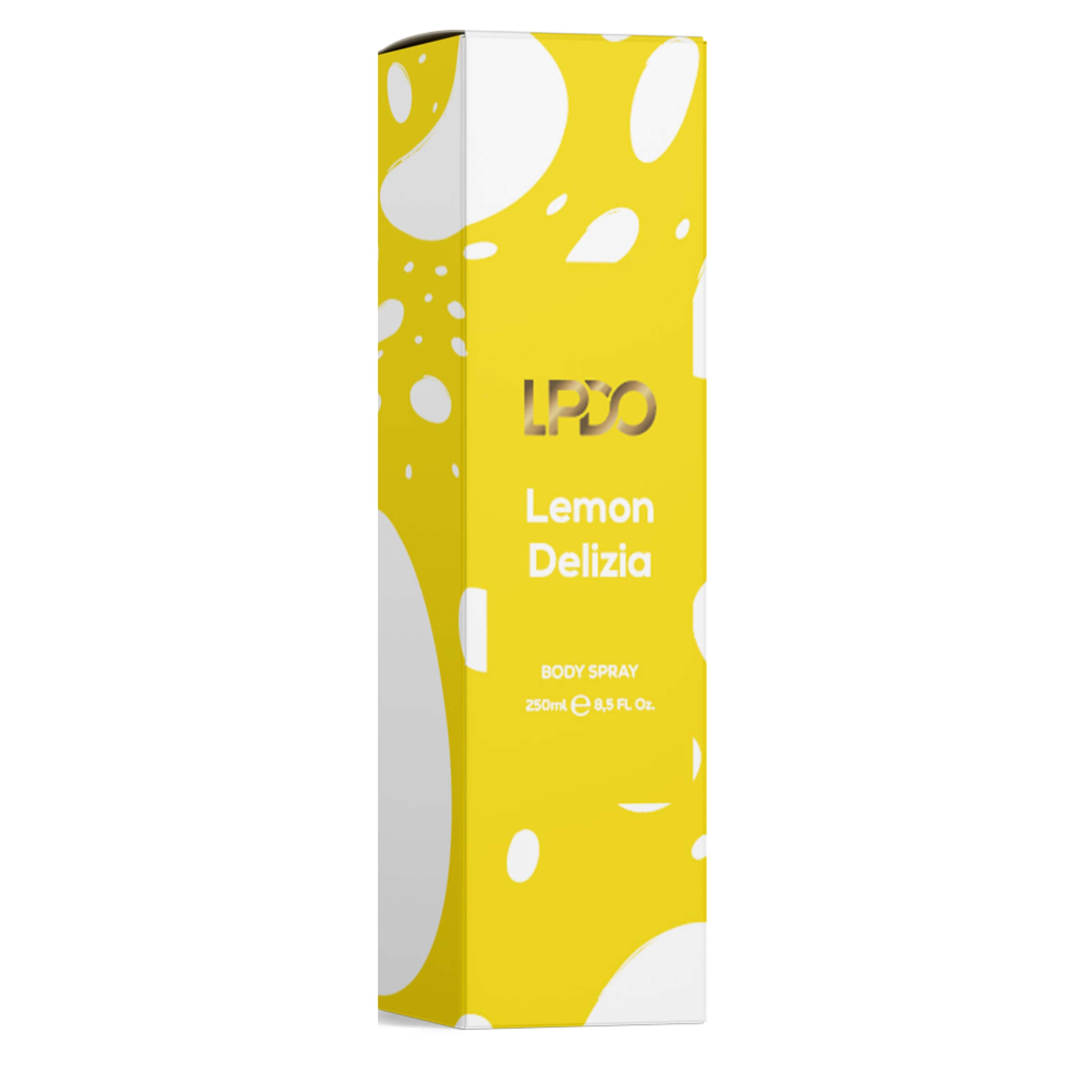 Una fragranza che accende i sensi con una ventata agrumata luminosa e persistente, avvolta da una dolcezza morbida e delicata. LPDO Lemon Delizia è un body spray che cattura la magia di un mattino d’estate, dove la freschezza del limone incontra il calore avvolgente della vaniglia in una danza olfattiva equilibrata, cremosa e irresistibile. Un'esperienza sensoriale dal carattere elegante e vivace, pensata per chi desidera sentirsi fresco, energico e raffinato in ogni momento della giornata.• Freschezza cremosa e raffinata: Le note iniziali agrumate aprono con vivacità la composizione, lasciando spazio a un cuore dolce e avvolgente di vaniglia delicata. Un equilibrio perfetto tra vitalità e morbidezza.• Piacevole sulla pelle: Grazie alla sua formula leggera e non oleosa, Lemon Delizia si assorbe rapidamente dopo l'applicazione, lasciando la pelle profumata e asciutta, con una sensazione di comfort naturale che dura nel tempo.• Uso quotidiano versatile: Ideale al mattino dopo la doccia, per una pausa rigenerante nel pomeriggio o come tocco di freschezza serale. Perfetto per ogni momento in cui si desidera una sensazione di pulizia, energia e leggerezza.• Tendenza olfattiva moderna: Questo body spray fa parte della linea ispirata ai profumi più iconici reinterpretati per l’uso quotidiano. Una scelta contemporanea per chi ama distinguersi con stile, anche nei dettagli più semplici.• Packaging allegro e vivace: Il flacone trasparente da 250 ml con decorazioni in giallo acceso e tappo bianco lucido esprime la personalità solare e positiva della fragranza. Accompagnato da una confezione esterna coordinata, ideale anche come idea regalo.LPDO Lemon Delizia è un gesto quotidiano di gioia e luminosità, una firma olfattiva fresca e avvolgente che lascia una traccia leggera ma inconfondibile. Un body spray pensato per accompagnarti con leggerezza ed energia, ogni giorno.Capacità: 250 mlFragranza: Agrumata e vanigliataTexture: Leggera e a rapido assorbimentoUtilizzo consigliato: Dopo la doccia o in qualsiasi momento della giornata