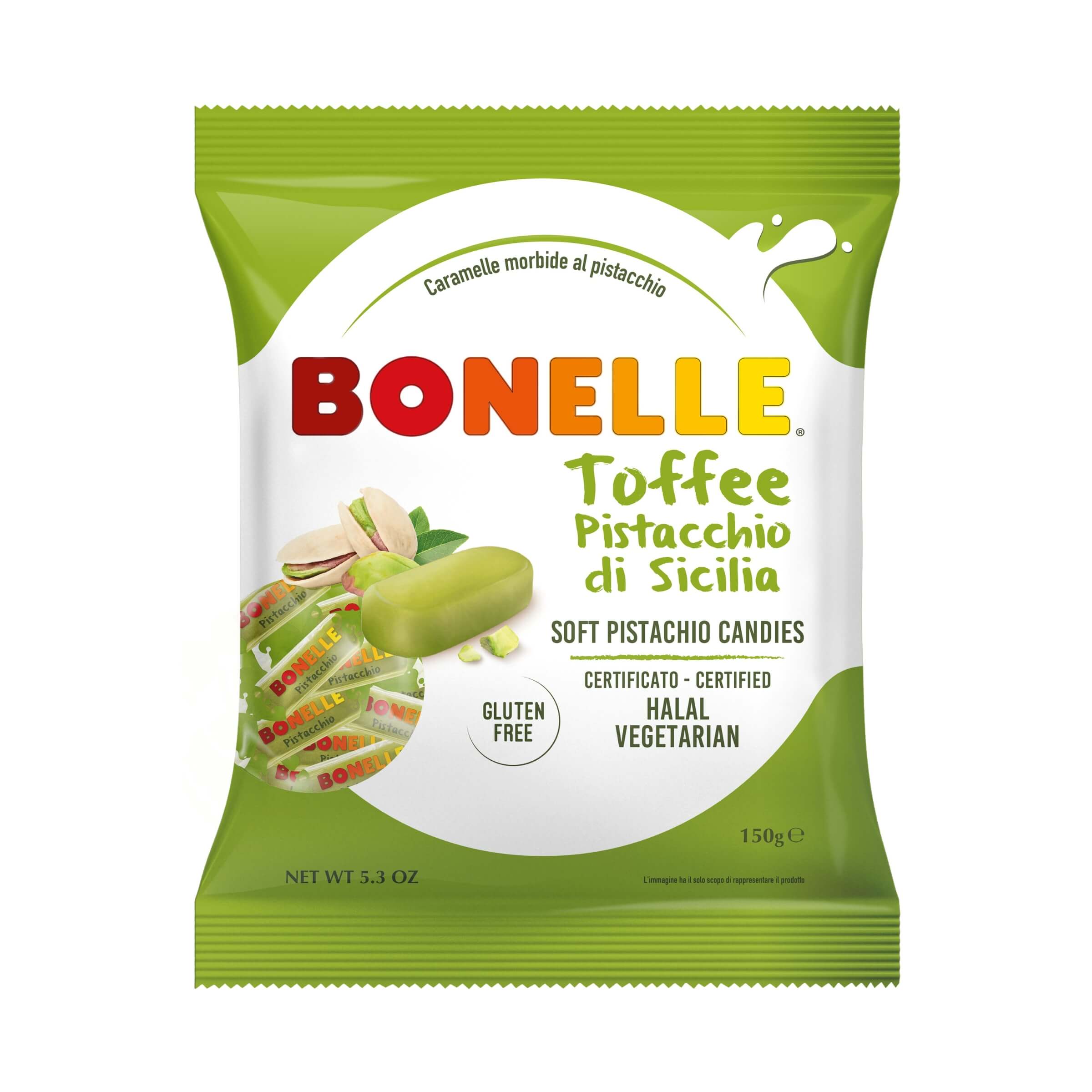 Le Bonelle Toffee al Pistacchio Senza Glutine in Busta da 150 g offrono un'esperienza sensoriale ricca, morbida e intensamente aromatica, pensata per chi ama il gusto autentico del pistacchio unito alla cremosità del latte. La consistenza tenera e vellutata delle caramelle invita a una degustazione lenta, durante la quale emergono note calde, avvolgenti e leggermente tostate, tipiche di questo frutto pregiato. Ogni toffee è resa unica dalla combinazione equilibrata tra la dolcezza del latte e il carattere deciso del pistacchio, creando un profilo gustativo capace di rievocare sensazioni familiari e al tempo stesso raffinate. La busta da 150 g rappresenta un formato pratico e ideale sia per un consumo quotidiano sia per un momento di condivisione, mantenendo sempre intatta la qualità del prodotto. L'assenza di glutine rende queste caramelle adatte a un vasto pubblico, senza rinunciare alla piacevolezza della loro struttura morbida e del loro sapore distintivo.• Ricetta con pistacchio al 4 percento: la presenza di pistacchio in percentuale significativa contribuisce a definire un gusto pieno, naturale e ben riconoscibile, valorizzando una materia prima pregiata e caratteristica della tradizione dolciaria italiana.• Componente lattiera cremosa: il latte intero in polvere al 6 percento e il latte concentrato zuccherato al 3 percento donano alle caramelle una consistenza morbida e una nota aromatica rotonda, che si fonde armoniosamente con il profumo delicatamente tostato del pistacchio.• Struttura morbida grazie ai grassi vegetali: l'olio di cocco contribuisce a ottenere una texture vellutata e uniforme, permettendo alla toffee di sciogliersi lentamente in bocca senza perdere compattezza o qualità sensoriale.• Aromi naturali e zucchero caramellato: l'aggiunta di aromi accuratamente selezionati e di zucchero caramellato arricchisce il profilo gustativo, introducendo una nota calda che amplifica la percezione del pistacchio e del latte.• Prodotto senza glutine: l'assenza di glutine garantisce un consumo sicuro per chi segue un'alimentazione specifica, mantenendo comunque tutta la morbidezza e la piacevolezza tipica delle toffee Bonelle.Le Bonelle Toffee al Pistacchio trasformano ogni assaggio in un momento di dolcezza intensa e avvolgente, dove il gusto del pistacchio incontra la cremosità del latte in un equilibrio perfettamente armonico. Ogni caramella è un piccolo attimo di gratificazione, capace di unire morbidezza, aroma e sensazioni confortanti in un gesto semplice e rilassante, ideale per accompagnare la giornata con una nota raffinata e appagante.