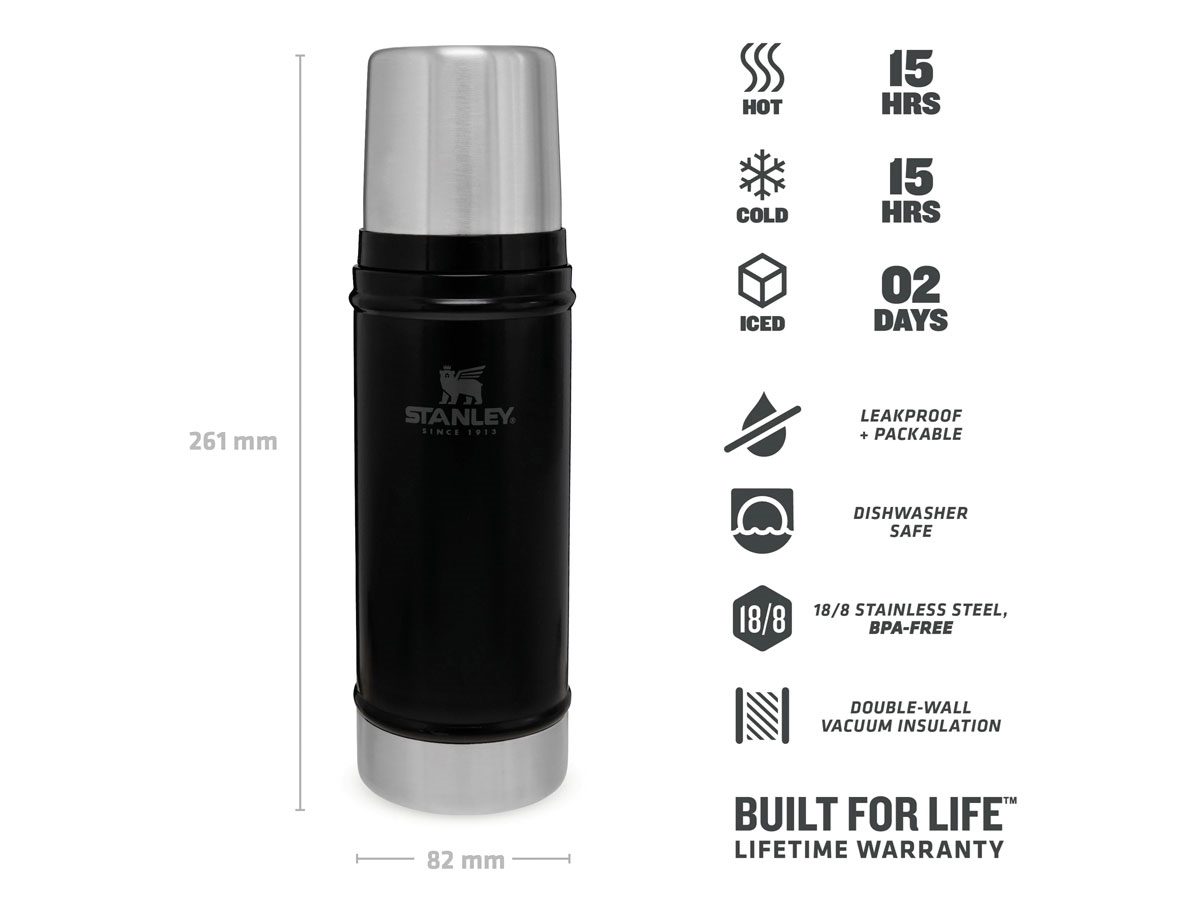 Questo piccolo e robusto serbatoio di una bottiglia è costruito per resistere a cadute, ammaccature e il tutto preservando l'integrità termica della tua bevanda preferita, fino a quando non hai finito di gustarla. Questa leggendaria bottiglia sottovuoto in acciaio inossidabile mantiene 0,47 litri della tua bevanda preferita calda o fredda per 15 ore. Il coperchio isolato funge anche da tazza per bere..