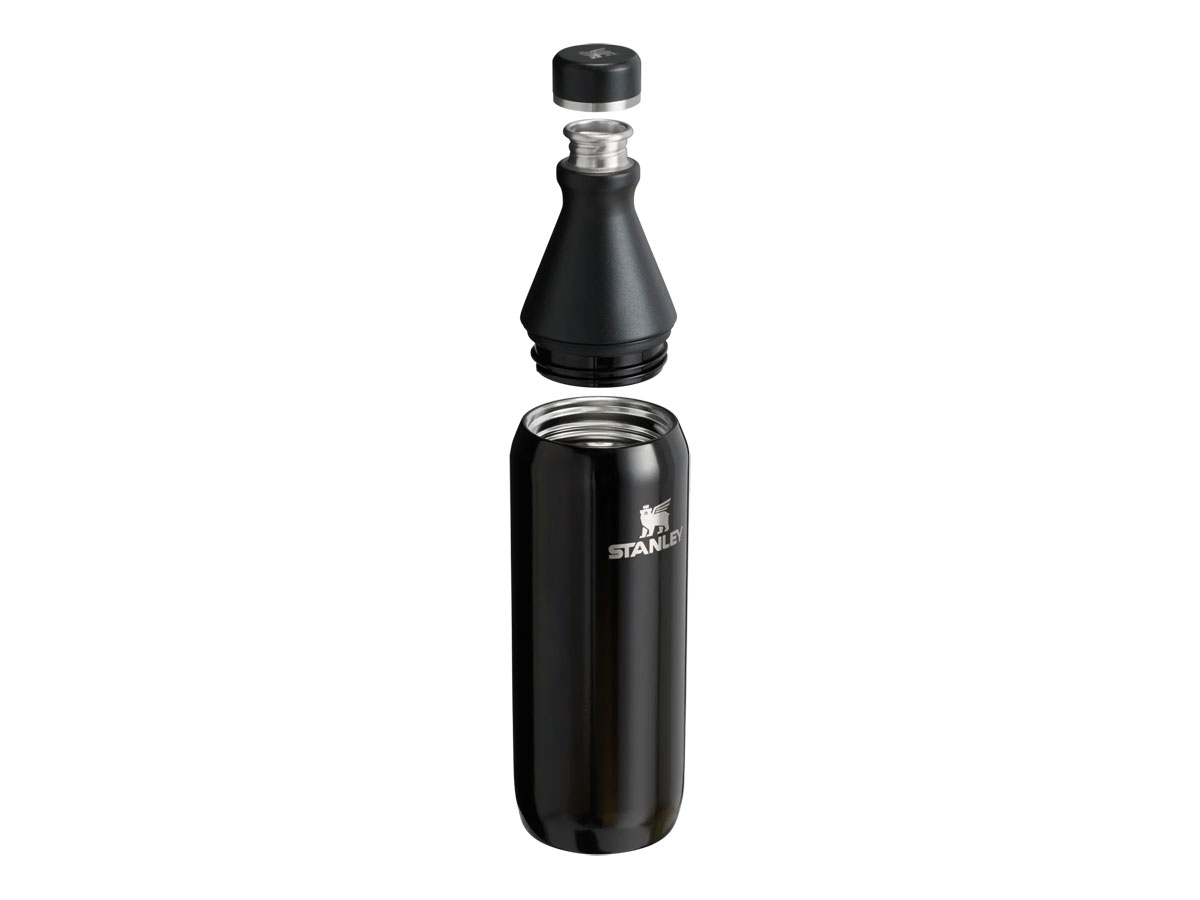 Questa bottiglia è perfetta per l'idratazione quotidiana. Realizzata in acciaio inossidabile riciclato al 90% con un'apertura in due pezzi, uno per sorseggiare e l'altro per il ghiaccio e la pulizia. Il collo della bottiglia è realizzato in acciaio inossidabile a parete singola con un collare filettato in plastica e una guarnizione compressa. Il corpo utilizza un isolamento sottovuoto in acciaio inossidabile a doppia parete e aiuta a mantenere la temperatura ideale della bevanda. Il logo Stanley è inciso sulla bottiglia, il che contrasta perfettamente la finitura di transizione da lucida a opaca.