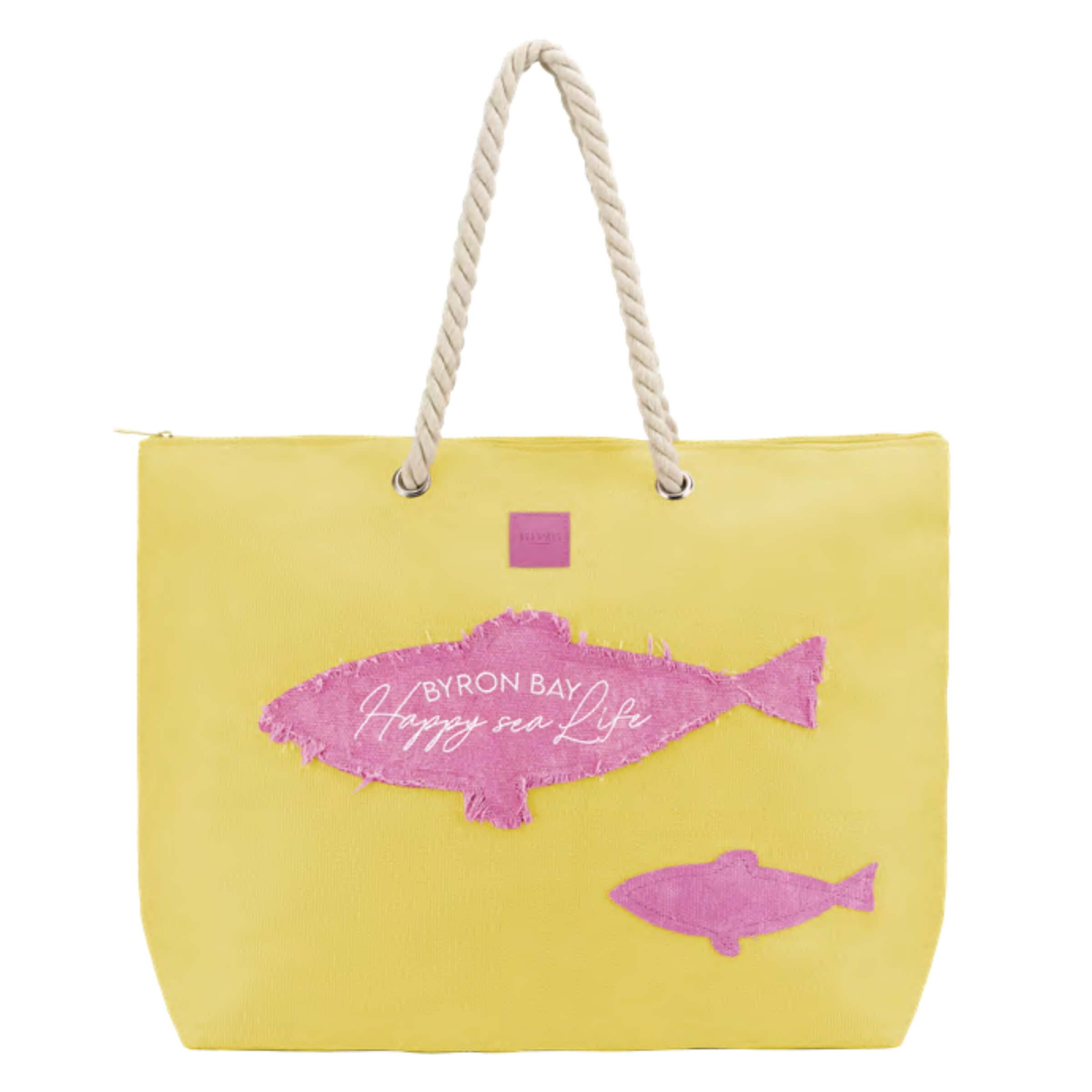Soleggiata e vivace, la borsa mare in canvas gialla con applicazioni rosa porta con sé tutta l’energia dell’estate. Un accessorio pensato per chi ama vivere il tempo libero con leggerezza, stile e un tocco creativo. Perfetta per giornate in spiaggia, pomeriggi in piscina o passeggiate estive, unisce funzionalità e design in un connubio armonioso.• Motivo decorativo marino: Le applicazioni frontali a forma di pesci, in tessuto rosa sfrangiato, evocano la libertà del mare e donano alla borsa uno stile fresco e originale, perfetto per chi ama distinguersi con eleganza.• Tessuti resistenti e piacevoli: Realizzata in canvas robusto e leggero, con fodera interna in cotone di colore abbinato, questa borsa è progettata per accompagnarti in ogni momento estivo, offrendo resistenza e comfort.• Manici in corda intrecciata: I manici in corda nautica spessa garantiscono una presa stabile e comoda anche a pieno carico, aggiungendo un dettaglio naturale e autentico allo stile complessivo della borsa.• Chiusura pratica con zip: La chiusura superiore con cerniera e tiralampo dorato assicura la protezione del contenuto, mantenendolo al sicuro da sabbia, vento e schizzi.• Tasca interna comoda: All’interno della borsa si trova una tasca piatta utile per organizzare piccoli oggetti come chiavi, telefono o accessori personali, mantenendo tutto in ordine e facilmente accessibile.• Capiente e stabile: Le ampie dimensioni consentono di trasportare comodamente tutto l’occorrente per una giornata all’aperto, dai teli mare ai cambi d’abito, senza rinunciare alla leggerezza.La borsa mare in canvas gialla con pesci rosa è una combinazione perfetta di praticità e personalità. Colorata, solare e versatile, si adatta con naturalezza a ogni occasione estiva, regalando stile e funzionalità in ogni momento della giornata.Materiali: Canvas, cotoneChiusura: Zip superiore con tiralampo doratoDotazione: 1 borsaDimensioni borsa: 50 x 41 x 20 cmColore: Giallo con applicazioni rosa
