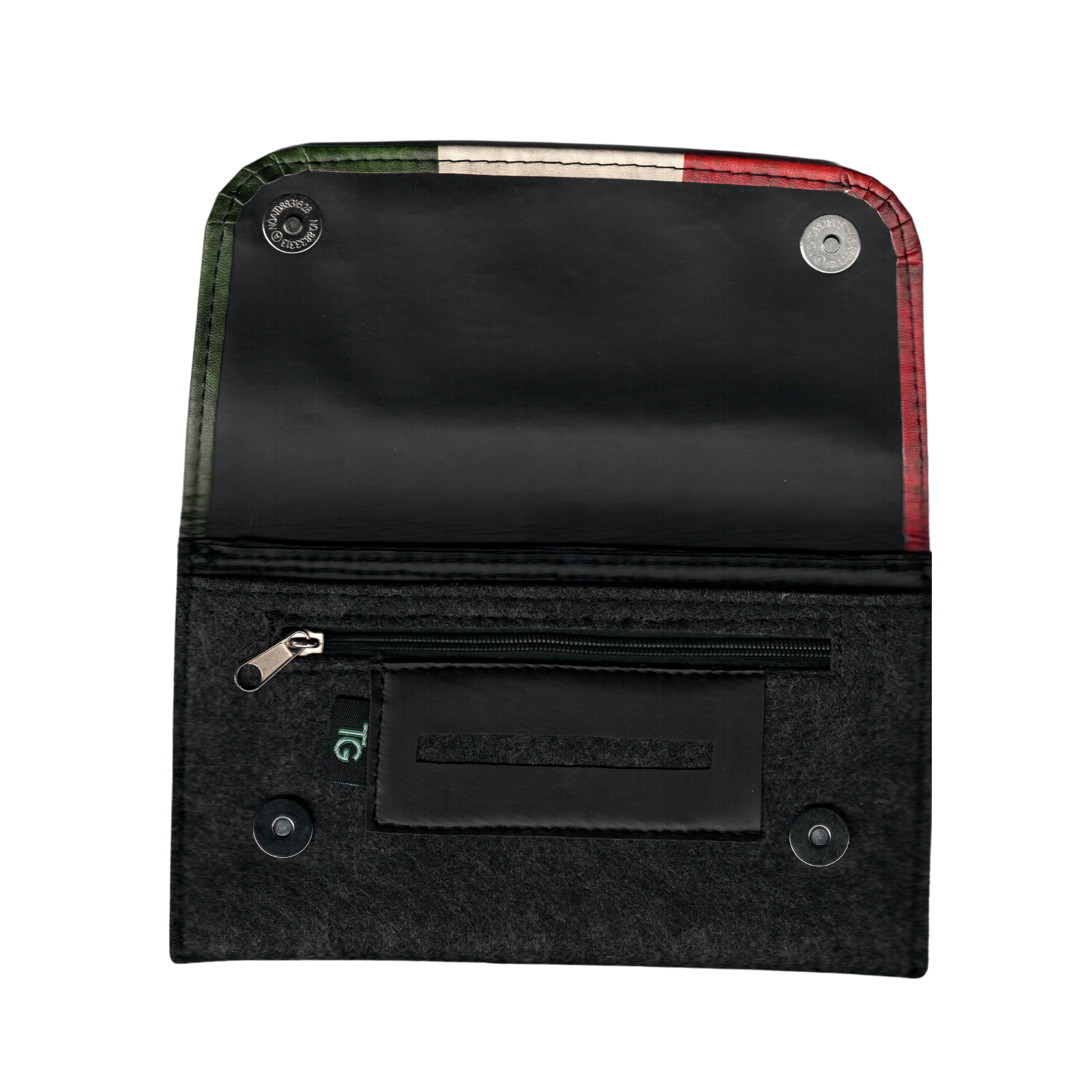 Celebra lo stile e la praticità con la Borsa Porta Tabacco Targard Bandiera Italia, un accessorio di design che fonde l'amore per il bel paese con la funzionalità di un porta tabacco di alta qualità. Questa borsa, caratterizzata da un vivace design con la bandiera italiana, è l'ideale per chi desidera esprimere il proprio orgoglio nazionale senza rinunciare alla comodità.• Design Unico: Decorata con i colori della bandiera italiana, questa borsa porta tabacco in acrilico è un vero e proprio statement di stile.• Dimensioni Compatte: Con le sue dimensioni di 17,5x10x1,5 cm quando chiusa, offre lo spazio necessario per il tuo tabacco e accessori mantenendo un profilo sottile e facilmente trasportabile.• Chiusura Innovativa: La borsa è dotata di una chiusura a bottoni per un facile accesso, insieme a una doppia cerniera, una interna ed una esterna sul retro, per una sicurezza ottimale.• Organizzazione Interna: L'interno presenta uno scomparto dedicato alle cartine, consentendoti di tenere tutto l'occorrente ordinato e facilmente raggiungibile.• Portabilità e Sicurezza: La combinazione di chiusura a bottoni e doppia cerniera garantisce che il contenuto rimanga sicuro e protetto, mentre la dimensione compatta rende la borsa ideale per essere portata ovunque.La Borsa Porta Tabacco Targard Bandiera Italia non è solo un accessorio pratico, ma un vero e proprio simbolo di appartenenza e stile. Che tu sia un fiero patriota o un ammiratore della cultura italiana, questa borsa è la scelta perfetta per mantenere il tuo tabacco e accessori organizzati con un tocco di eleganza nazionale.