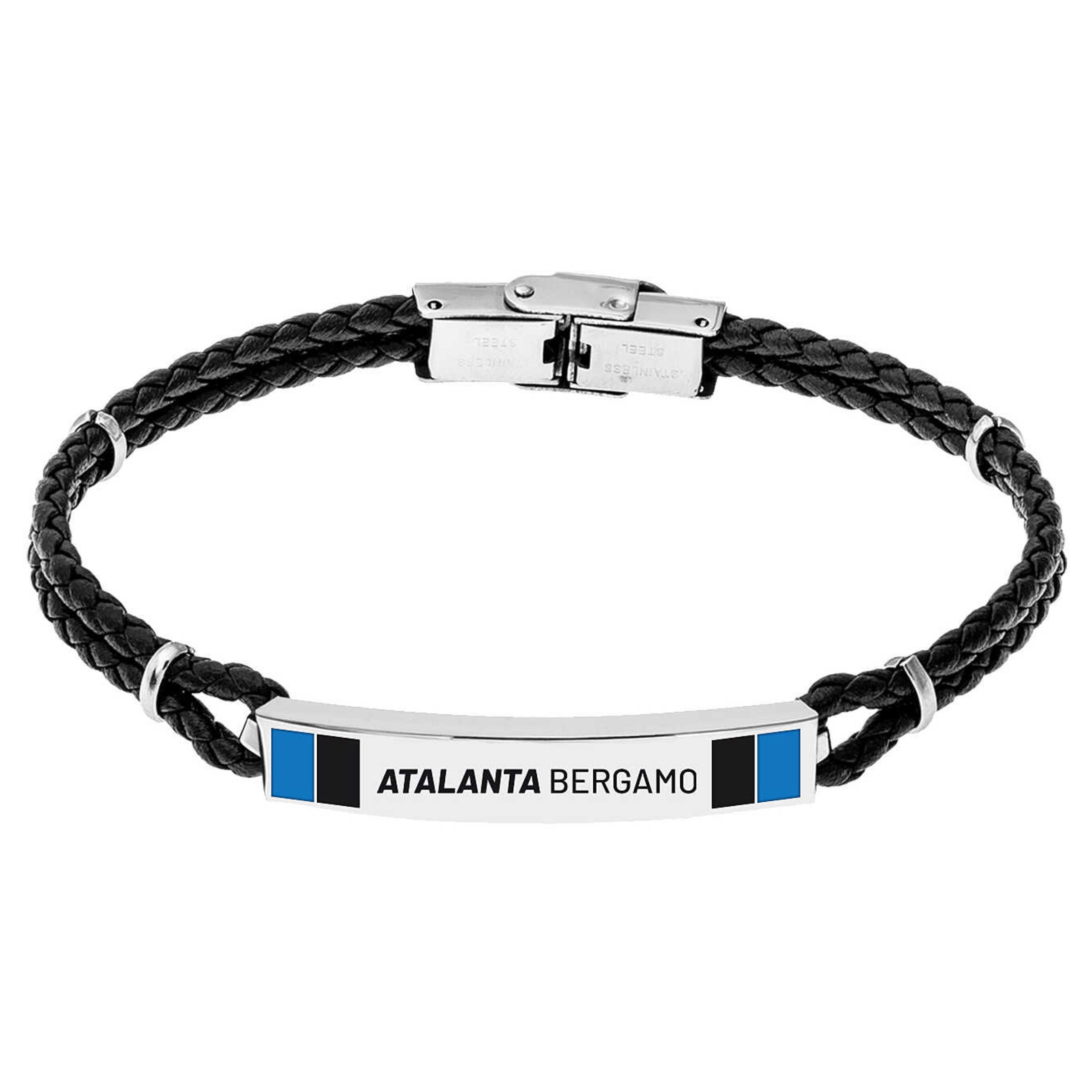 Bracciale Ufficiale Atalanta in Acciaio 316L con Piastra Smaltata Bicolor Regolabile - B-AB001UCB
