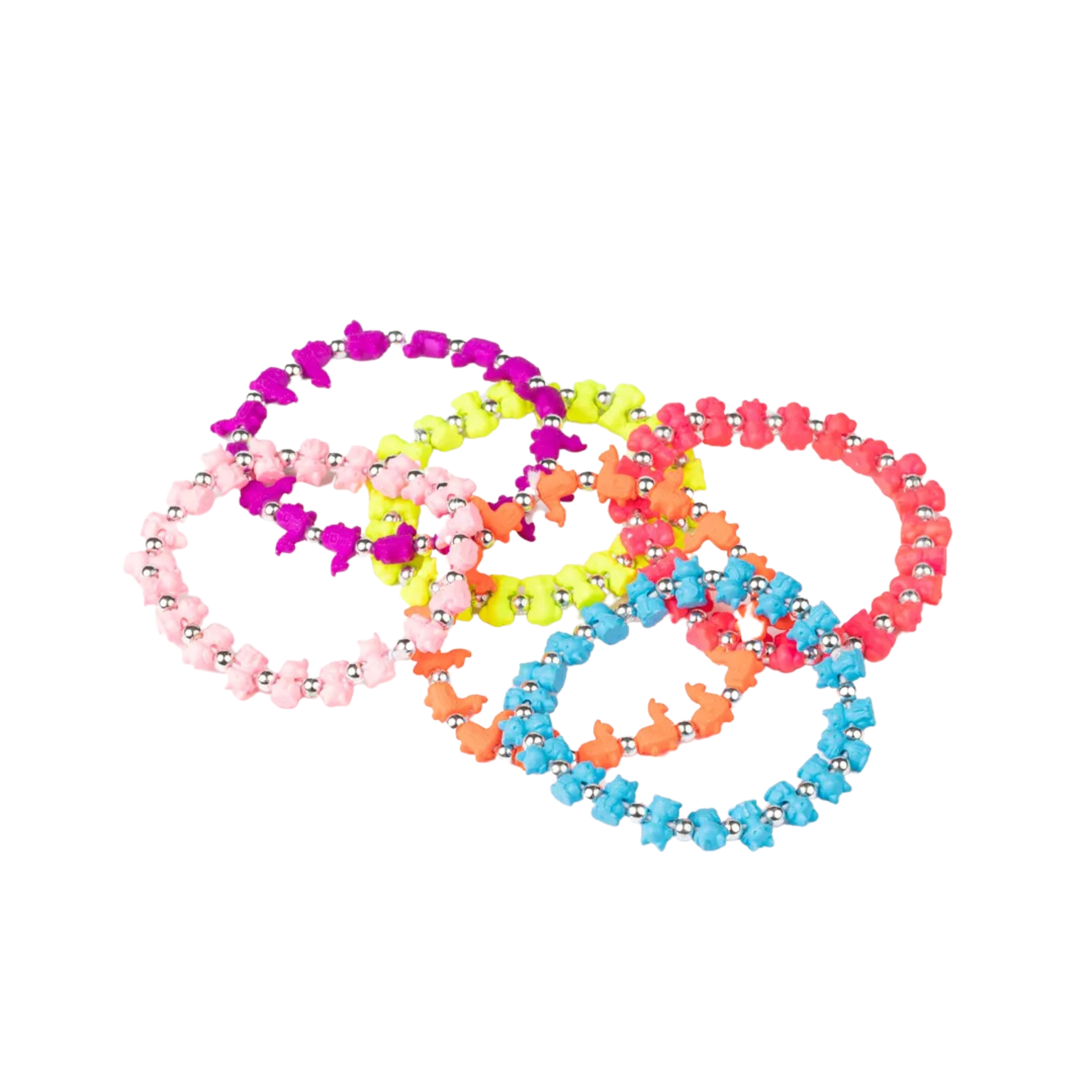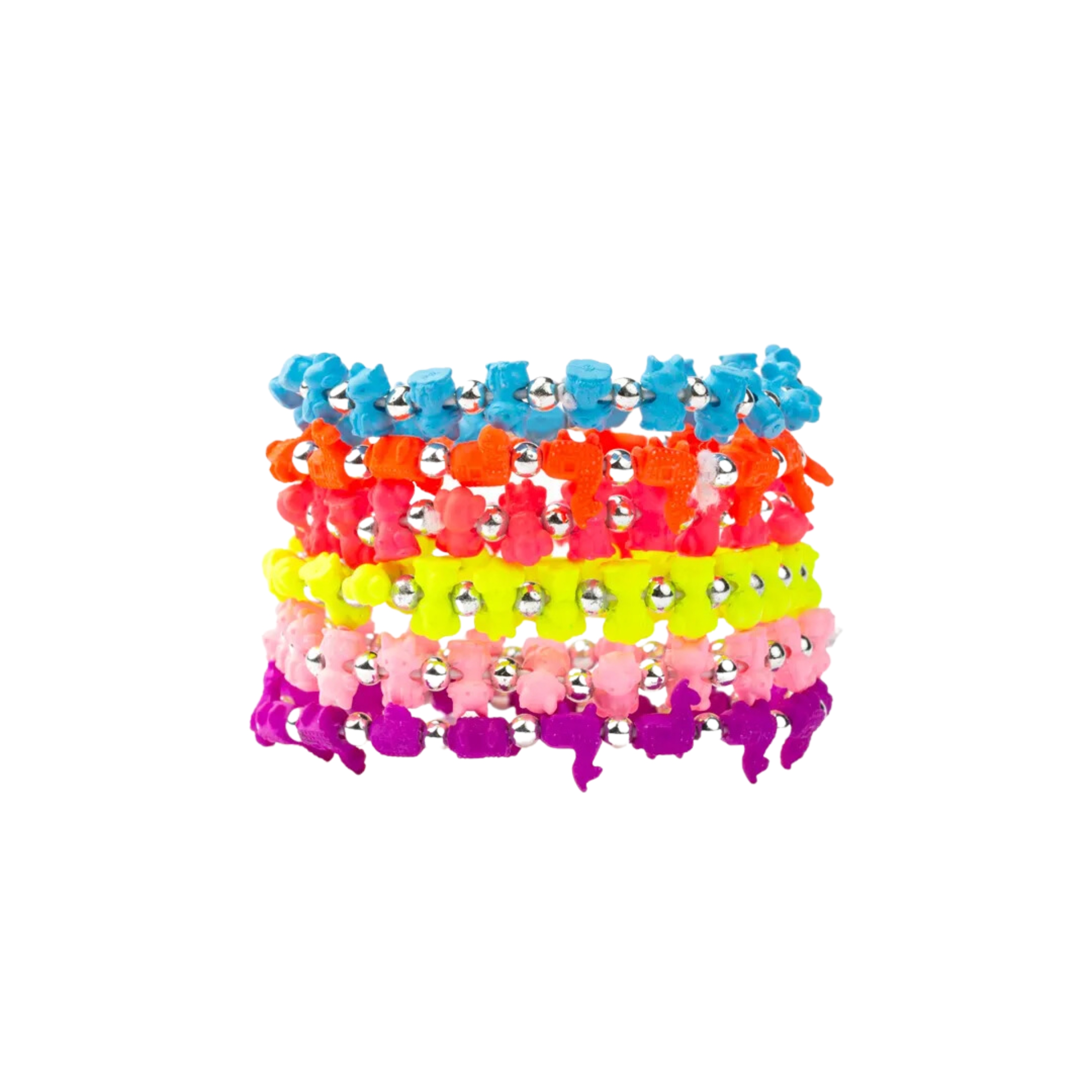 Siamo lieti di presentarvi la confezione di braccialetti Petz, un mix di 50 adorabili braccialetti a forma di cagnolino, gattino e lama, in una varietà di vivaci colori fluo!