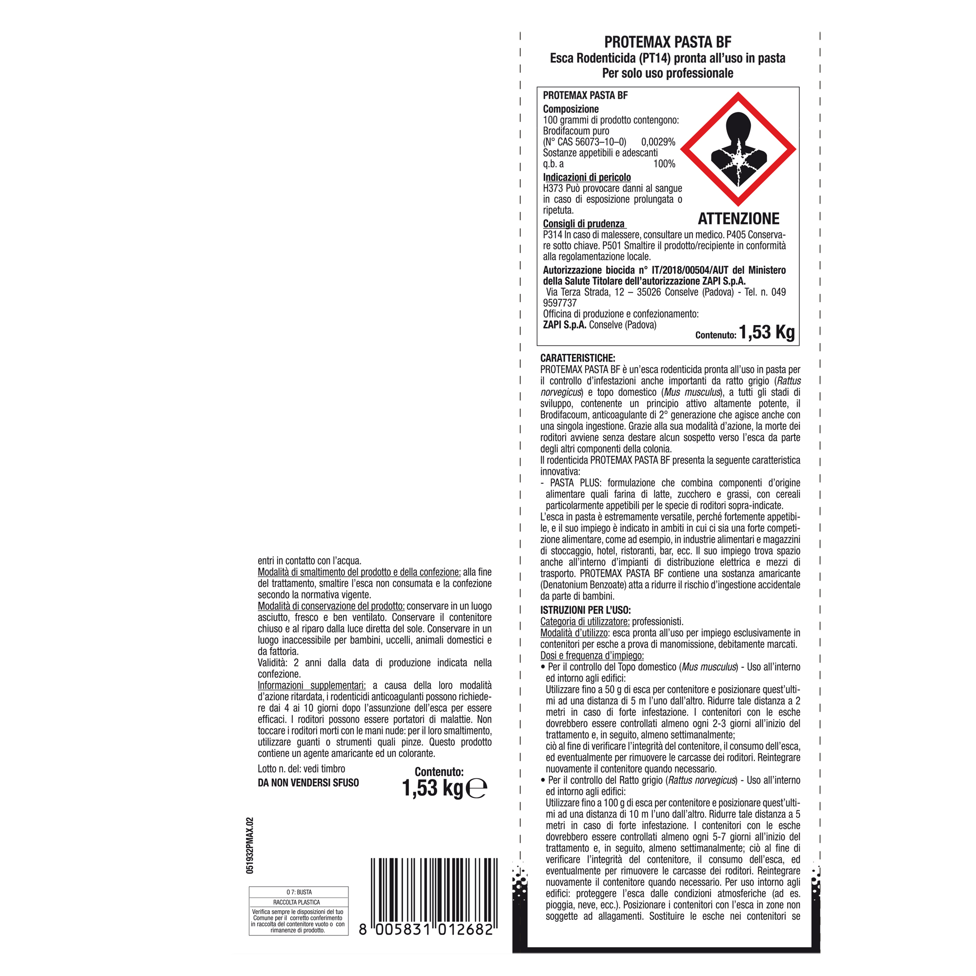 Busta rodenticida da 1,53kg pasta blu Protemax
