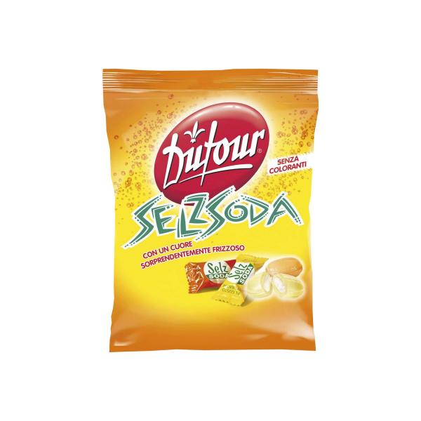 Un tuffo nel gusto frizzante dei ricordi, con il sapore autentico degli agrumi mediterranei: le caramelle Selz Soda al gusto arancia e limone sono una vera icona della dolcezza italiana. In ogni caramella si sprigiona una nota vivace e leggermente dissetante, grazie all'effetto frizzante che rende questo prodotto unico nel suo genere. Confezionate in una pratica busta da 90 grammi, queste caramelle sono perfette da tenere in borsa, in ufficio o da condividere durante la giornata.• Gusto agrumato e naturale: Le caramelle uniscono il profumo intenso degli oli essenziali di arancia e limone a una base zuccherina frizzante, per un effetto sorprendente e piacevolmente fresco.• Formula senza coloranti: La ricetta è realizzata senza l’aggiunta di coloranti artificiali, per un prodotto più naturale e rispettoso del gusto originale.• Effetto frizzante: Grazie alla presenza di acidificanti naturali e correttori di acidità, ogni caramella regala una sensazione effervescente che stimola il palato e richiama alla mente la spensieratezza dell’infanzia.• Formato comodo: La busta da 90 grammi contiene un assortimento di caramelle al gusto arancia e limone, ideale per l’uso personale, da condividere o da esporre nel punto vendita.• Valori nutrizionali per 100 grammi: Energia 1569 kJ / 369 kcal, Grassi 0 g (di cui saturi 0 g), Carboidrati 92 g (di cui zuccheri 64 g), Proteine 0 g, Sale 1,4 g.Le caramelle Selz Soda rappresentano un piccolo piacere quotidiano dal carattere deciso e inconfondibile. Una proposta adatta a tutti, grandi e piccoli, che amano i sapori vivaci e la tradizione italiana delle caramelle di qualità.