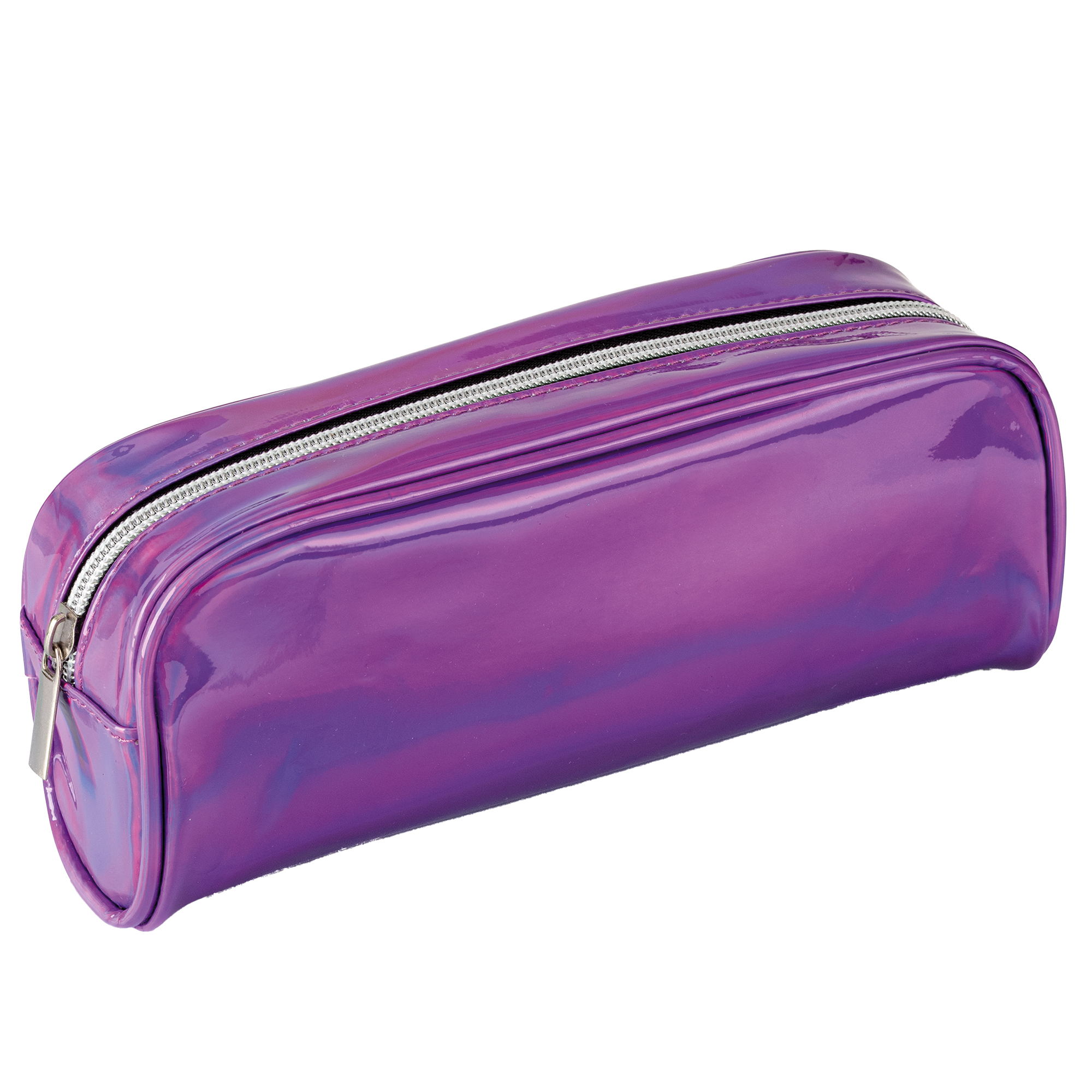 BUSTINE PORTAPENNE GLOSSY CON ZIP DI COLOR ARGENTO IN 2 FORMATI. COLORI ASSORTITI. FORNITE IN DISPLAY DA BANCO CONTENENTE 18 PZ ASSORTITI IN 4 COLORI: 9 TOMBOLINI DIAM. 7,5X22CM E 9 BUSTINE 6,5X22X9CM. Composto da 18