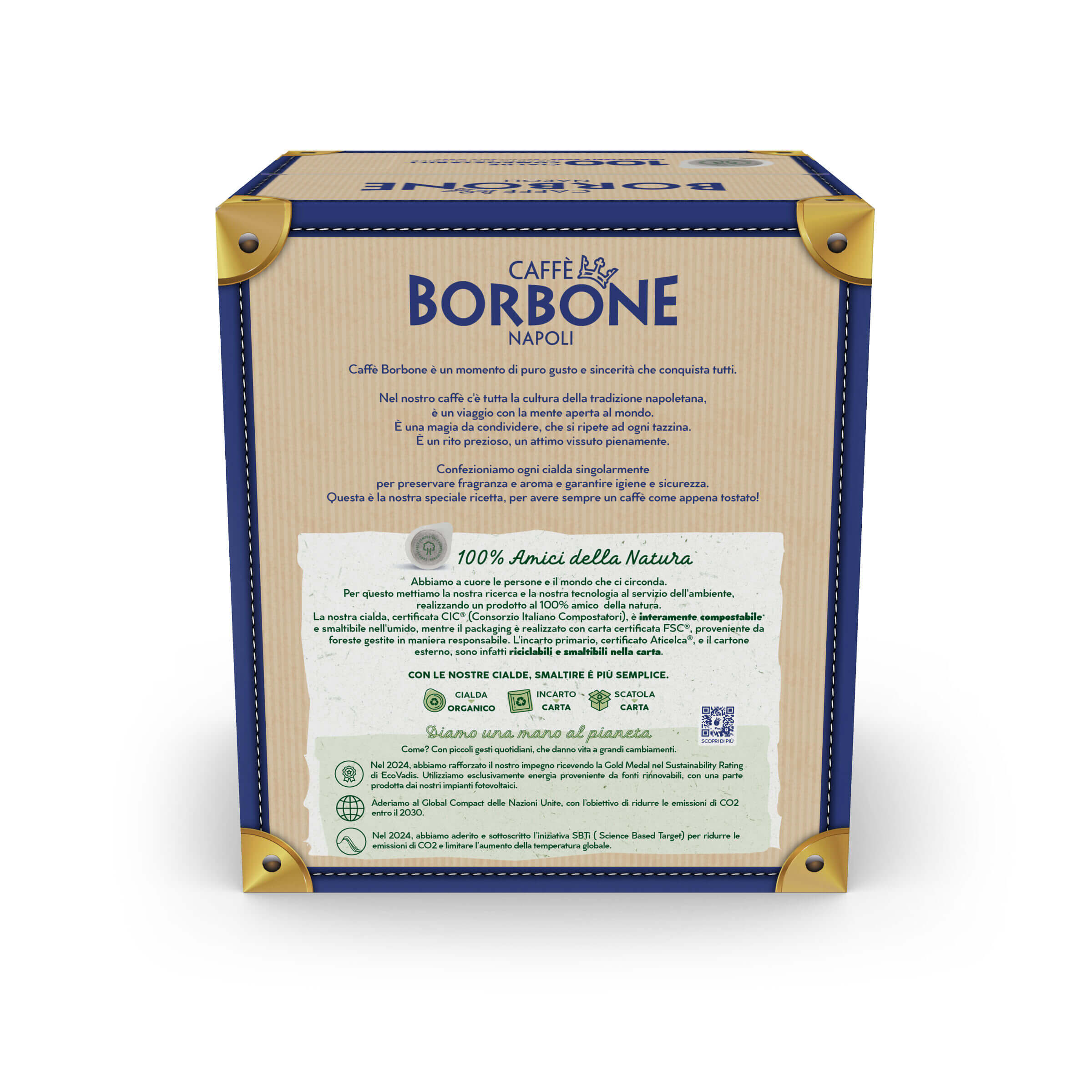 Il Caffè Borbone Miscela Nera in cialde compostabili ESE da 44 mm rappresenta l’essenza autentica del vero espresso napoletano, un caffè dal gusto intenso e deciso, capace di regalare la stessa esperienza di un bar tradizionale. Ogni cialda racchiude un’attenta selezione di miscele torrefatte e macinate con cura, pensate per garantire un risultato cremoso, corposo e avvolgente in ogni tazza. La confezione da 100 cialde è ideale per chi desidera un approvvigionamento pratico e duraturo, perfetto sia per la casa che per l’ufficio, mantenendo inalterata la fragranza del caffè grazie al confezionamento singolo.Il grande pregio di queste cialde risiede anche nella loro sostenibilità: ogni porzione è realizzata in carta filtro compostabile, con incarto riciclabile, pensato per ridurre l’impatto ambientale e rispettare la natura. Un prodotto che unisce tradizione e innovazione, offrendo al consumatore non solo il piacere del caffè napoletano, ma anche la possibilità di compiere una scelta ecologica e consapevole.• Miscela Nera: Una selezione di chicchi studiata per un espresso dal carattere deciso, con note robuste e un corpo pieno, perfetto per chi ama un caffè forte e persistente.• Crema ricca e compatta: Ogni estrazione produce una crema densa e vellutata, indice di qualità e garanzia di un’esperienza paragonabile a quella di un bar.• Formato pratico: Le cialde ESE da 44 mm sono compatibili con tutte le macchine a sistema Easy Serving Espresso, permettendo un utilizzo semplice e veloce.• Confezionamento singolo: Ogni cialda è imbustata singolarmente in atmosfera protettiva, per preservare aroma e freschezza fino al momento dell’utilizzo.• Eco sostenibilità: Cialde compostabili e incarto riciclabile, smaltibili rispettivamente nell’umido e nella carta, per un consumo attento all’ambiente.• Tradizione napoletana: Torrefatto e confezionato a Napoli, questo caffè richiama la tipica tradizione partenopea, conosciuta in tutto il mondo per l’intensità e la ricchezza del suo espresso.Le Cialde Borbone Miscela Nera sono pensate per chi non rinuncia alla forza del gusto e vuole vivere ogni pausa come un rituale di piacere autentico. La cremosità persistente, l’aroma intenso e l’anima napoletana racchiusa in ogni tazza rendono questo caffè una scelta di qualità che accompagna i momenti più importanti della giornata, con un’attenzione concreta all’ambiente grazie ai materiali compostabili e riciclabili.