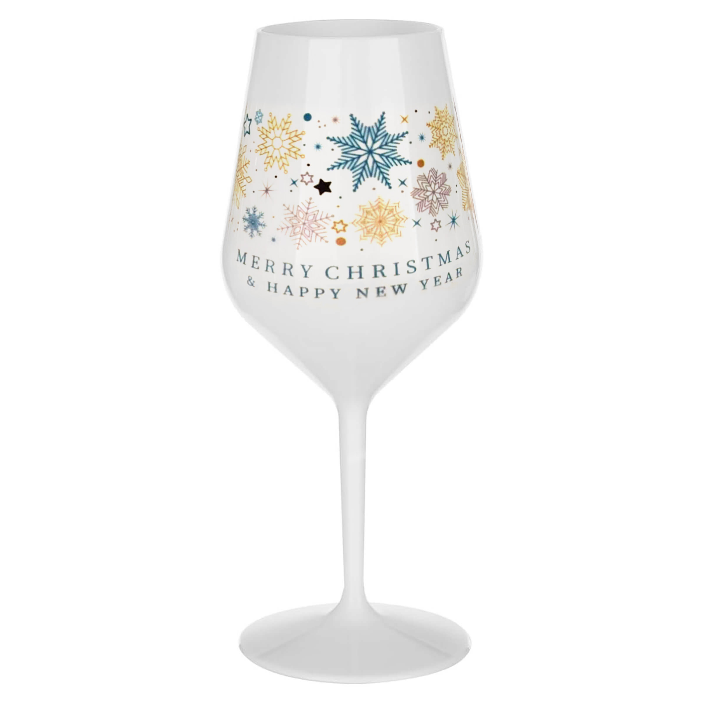I calici soffiati Goldplast dedicati al mondo wine cocktail nascono per portare eleganza, atmosfera e funzionalità nella preparazione di bevande aromatiche e cocktail moderni, combinando un design professionale con materiali avanzati pensati per durare nel tempo. La versione in colore bianco valorizza lo stile della mise en place con una presenza scenografica particolare, capace di distinguersi per pulizia visiva ed effetto contemporaneo. La superficie opaca e uniforme crea un contrasto raffinato con il contenuto del calice, trasformando ogni servizio in un gesto curato nei dettagli. Realizzati in Tritan appartenente alla categoria TT, un tecno polimero resistente e trasparente alla luce pur nella finitura pigmentata, questi calici offrono infrangibilità, sicurezza alimentare e qualità estetica costante, rendendoli ideali per contesti professionali o eventi speciali. La grafica Merry Christmas integrata sul corpo del calice aggiunge una nota decorativa che si armonizza perfettamente con il bianco, creando un effetto visivo festivo ed elegante.