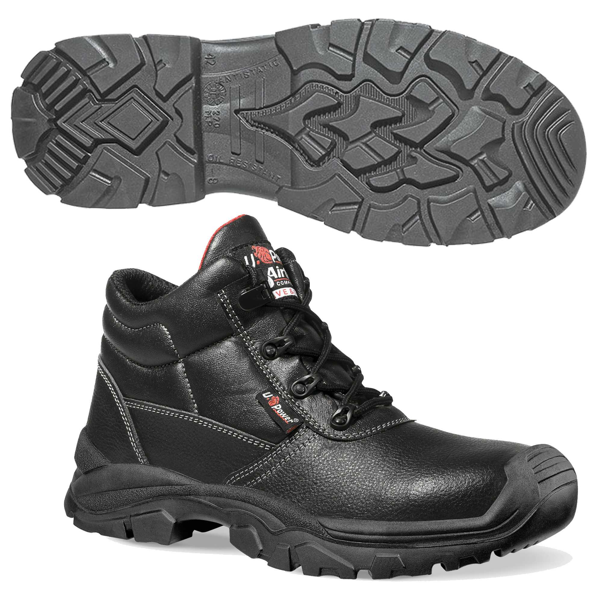SCARPE ANTINFORTUNISTICHE POLACCHE TOTALMENTE ''METAL FREE'', COMODE E LEGGERE U-POWER DELLA LINEA ROCKEROLL. TOMAIA IN PELLE GRANA MINA IDROREPELLENTE, INSERTI IN MESH TRASPIRANTE, PUNTALE AIRTOE COMPOSITE, ANTIPERFORAZIONE, ANTISCIVOLO E SUOLA PU/PU. DISPOSITIVO DI PROTEZIONE INDIVIDUALE: MODELLO, CALZATURA ALLA CAVIGLIA ART. RR10443 TEXAS UK RS. CATEGORIA DI PROTEZIONE: II. MARCATURA: S3 CI SRC. CALZATURA DI SICUREZZA PER USO PROFESSIONALE CONFORME ALLA NORMA ARMONIZZATA EN ISO 20345:2011.