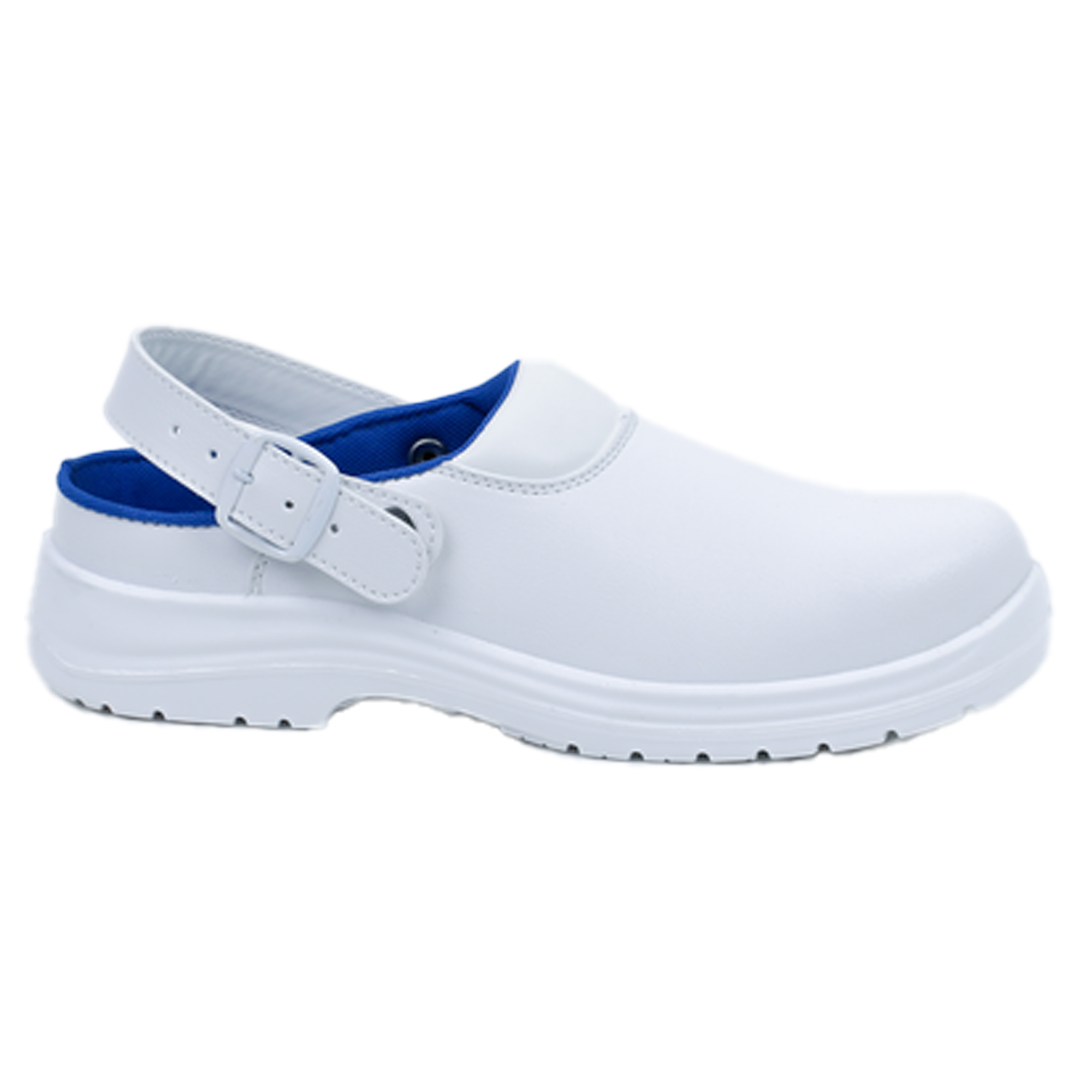 Sabot da lavoro in microfibra adatti per lavori nel settore agroalimentare, con cinturino regolabile e staccabile. Suola a doppia de nsitA'. Prodotto leggero per ridurre l'affaticamento durante la giornata. Elevata stabilitA' grazie alle proprietA' di aderenza della suola. Design liscio per una facile pulizia quotidiana. Soletta estraibile per un facile lavaggio. TraspirabilitA'. Colore: bianco. Tg disponibili da 35 a 48