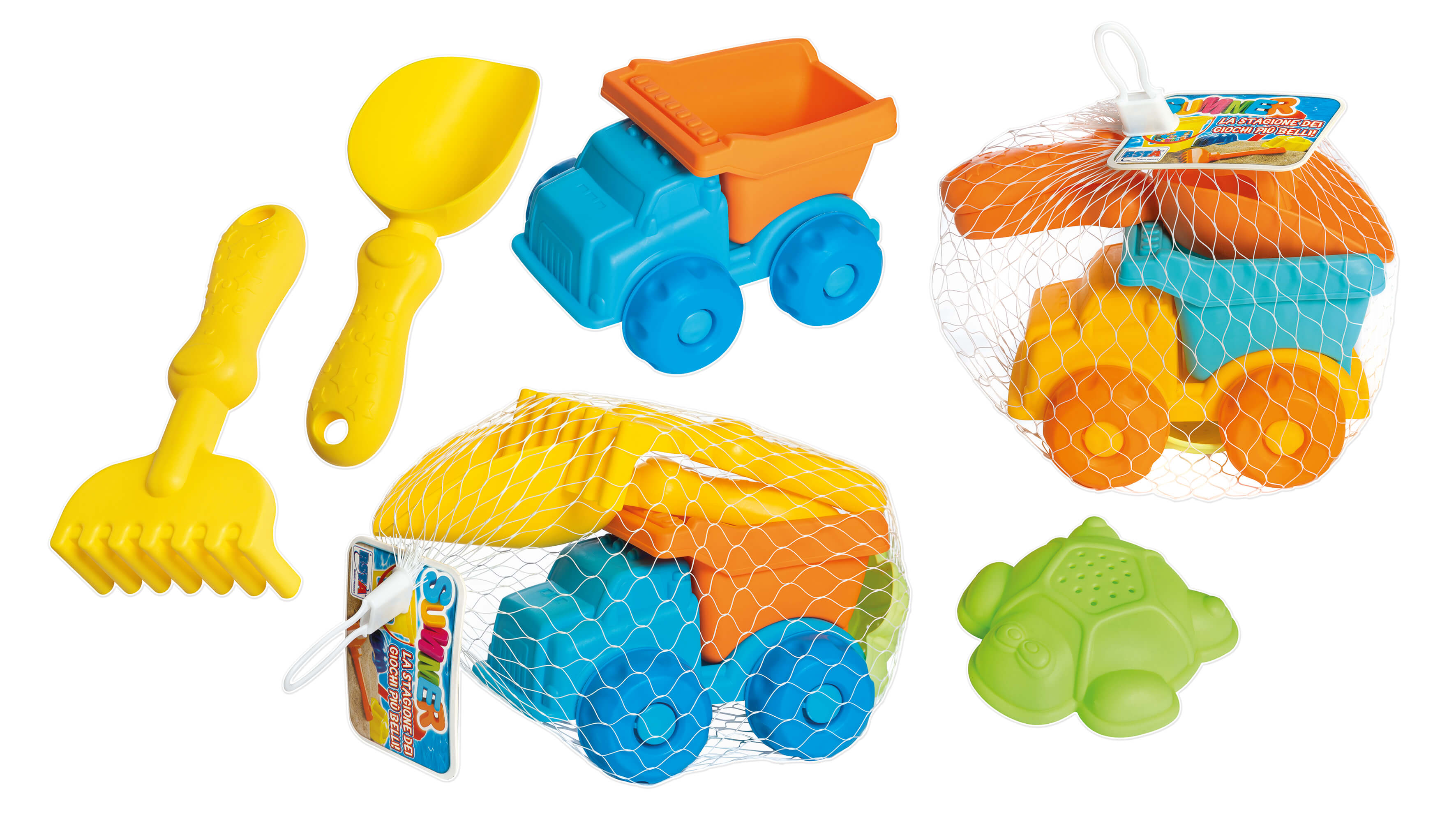 Divertimento e costruzione si uniscono nella sabbia con questo adorabile set di giochi da spiaggia! Dotato di un camion colorato e gli attrezzi essenziali per scavare e modellare, ogni bambino può diventare un piccolo costruttore sulla spiaggia.• Camion Robusto per Piccoli Imprenditori: Il camion di 15,5 cm è perfetto per trasportare sabbia, sassolini e creatività da una parte all'altra della spiaggia.• Attrezzi Pratici Inclusi: Il set comprende una paletta e un rastrello, entrambi progettati con manici confortevoli e dimensioni adatte ai bambini, oltre a una formina per creazioni sabbiose fantasiose.• Materiale Colorato e Sicuro: Realizzato con plastica di alta qualità, resistente all'acqua e non tossica, per ore di gioco sicuro sotto il sole.• Facilità di Trasporto: Confezionato in una rete pratica, questo set è facile da portare in spiaggia e da ripulire dopo l'uso.• Stimola la Creatività: Aiuta a sviluppare la motricità fine dei bambini e l'amore per la natura mentre si divertono a costruire castelli di sabbia e a scavare tunnel.Un Mondo di Avventure in Spiaggia!Questo set di giochi da spiaggia con camion e attrezzi è perfetto per regalare ai bambini ore di divertimento creativo. Ideale per famiglie in vacanza o per un regalo estivo, incoraggia l'attività all'aperto e la gioia di giocare all'aria aperta.