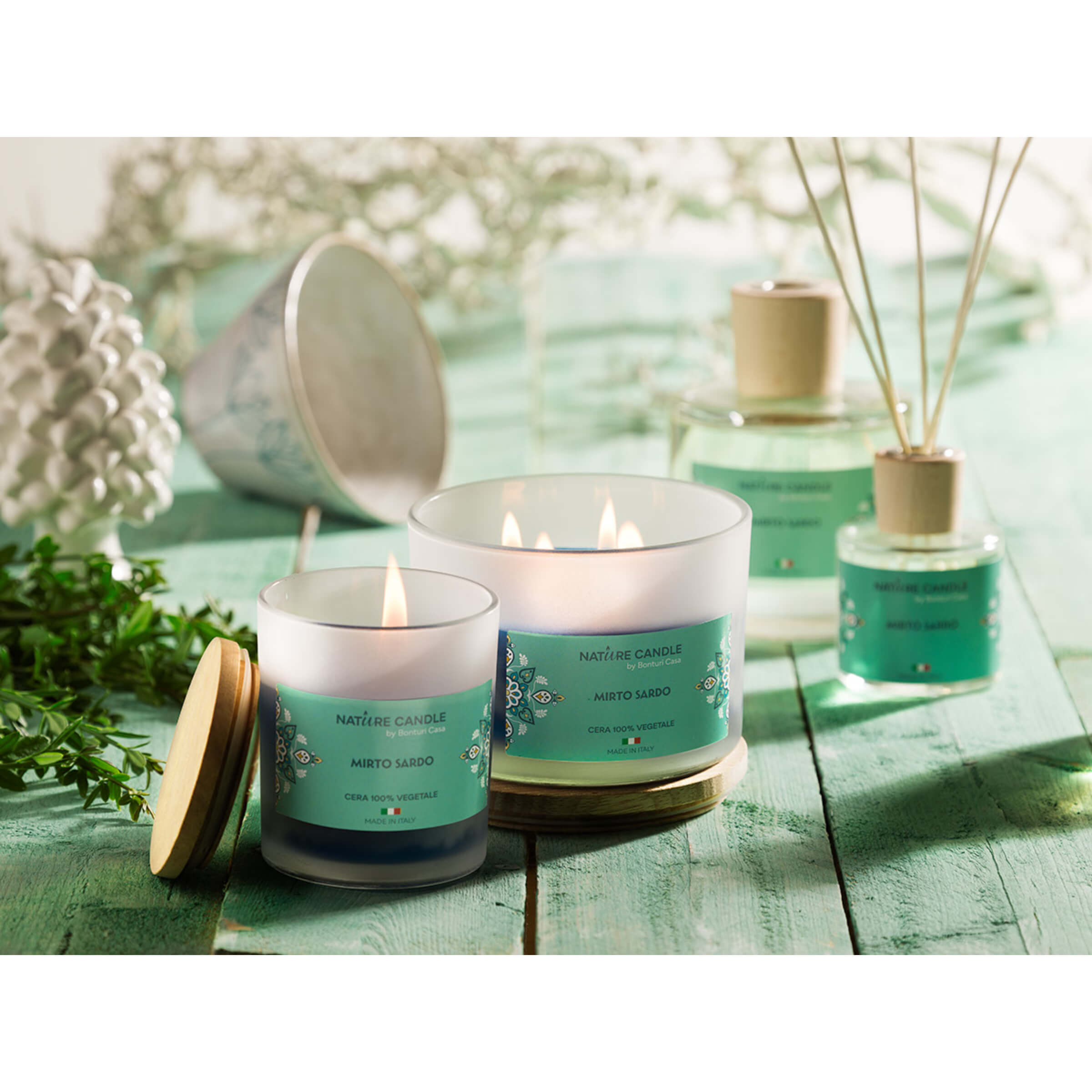 Le nostre candele di produzione artigianale, in cera 100% vegetale sono ecologiche, sostenibili, biodegradabili e non rilasciano sostanze dannose nell’ambiente.