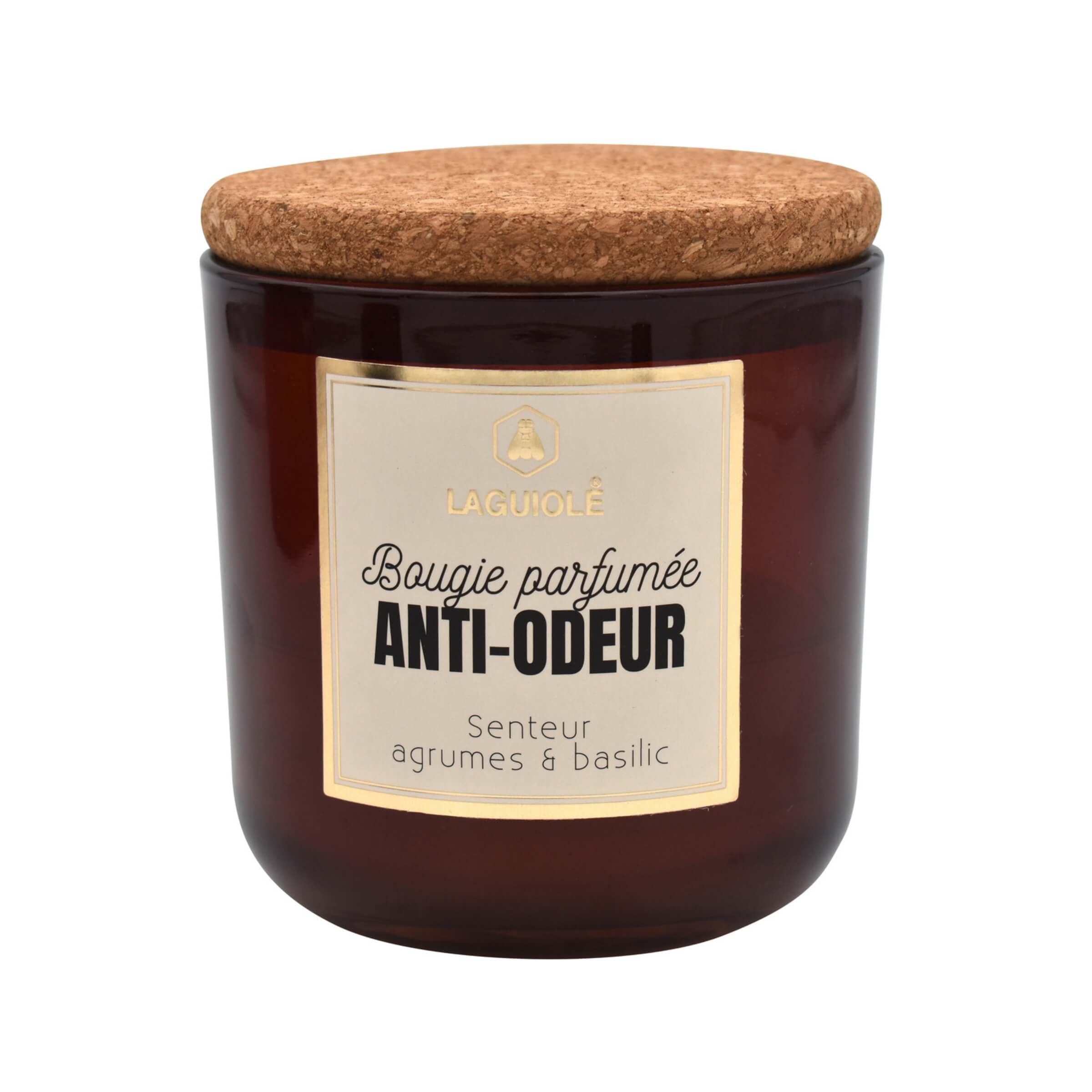 CANDELA LAGUIOLE IN VETRO CON TAPPO IN SUGHERO PROFUMO ANTIODORE AGRUMI E BASILICO - 40269828