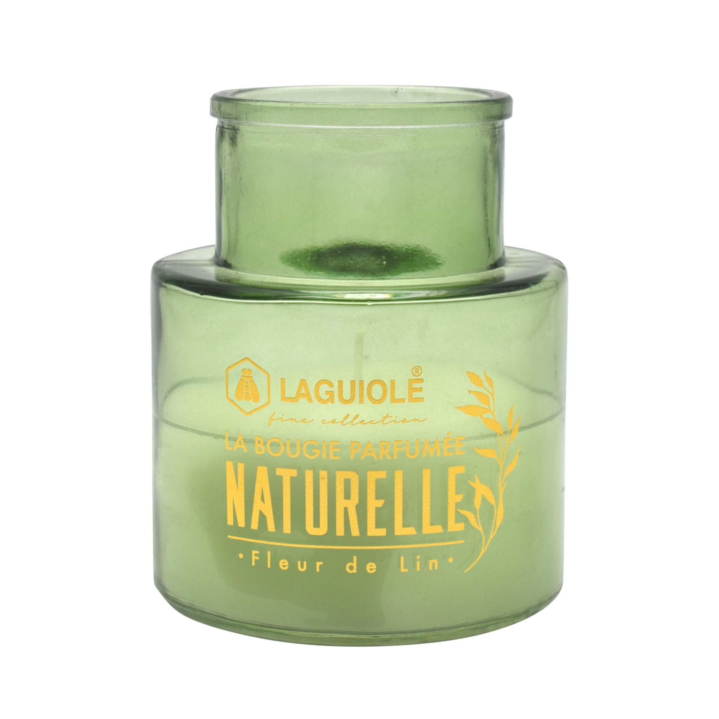 CANDELA LAGUIOLE IN VETRO FIORI DI LINO 220gr - 40269829
