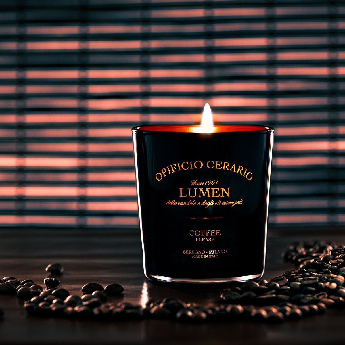 La candela Opificio Cerario Lumen Coffee Please in cera vegetale da 300 ml è pensata per ricreare l'atmosfera calda, avvolgente e sofisticata delle coffee house tradizionali, dove l'aroma del caffè tostato riempie l'ambiente e diventa parte di un rituale quotidiano. Il design elegante del contenitore scuro, impreziosito da serigrafie dorate, richiama la cura artigianale che contraddistingue la storica produzione Lumen sin dal 1961. La superficie opaca del vetro e la sua presenza scenica rendono questa candela un complemento d'arredo ideale per salotti, studi o angoli relax, valorizzando gli ambienti con un carattere pieno e raffinato. L'utilizzo di cera vegetale permette una combustione lenta e uniforme, offrendo una lunga esperienza olfattiva che accompagna momenti di lavoro, lettura o semplice convivialità domestica.