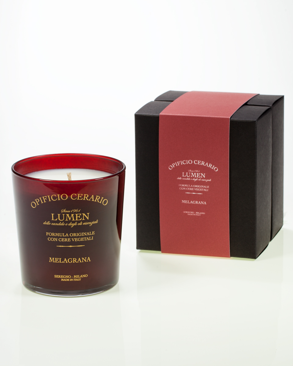 La candela Opificio Cerario Lumen in cera vegetale da 300 ml con profumazione alla melagrana è pensata per trasformare ogni ambiente in uno spazio ricco di calore, colore e vitalità. La sua presenza scenografica, data dal vetro rosso intenso serigrafato in oro, richiama fin da subito l'eleganza delle creazioni artigianali Lumen e la loro lunga tradizione iniziata nel 1961. Ogni dettaglio del design è studiato per valorizzare la luce della fiamma e rendere la candela un elemento decorativo capace di arricchire salotti, ingressi, camere da letto e zone relax con un tocco di personalità raffinata. La cera vegetale di alta qualità garantisce una combustione lenta e uniforme, permettendo di apprezzare la fragranza in tutta la sua evoluzione aromatica grazie a un tempo di utilizzo particolarmente prolungato.
